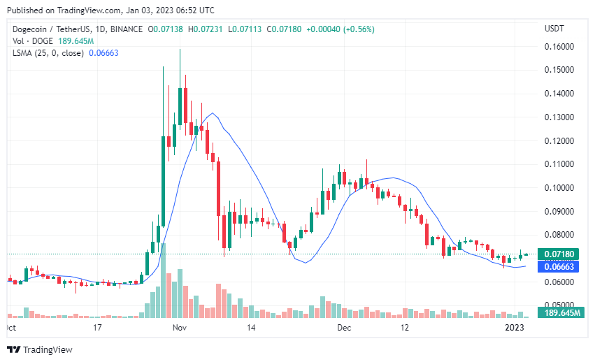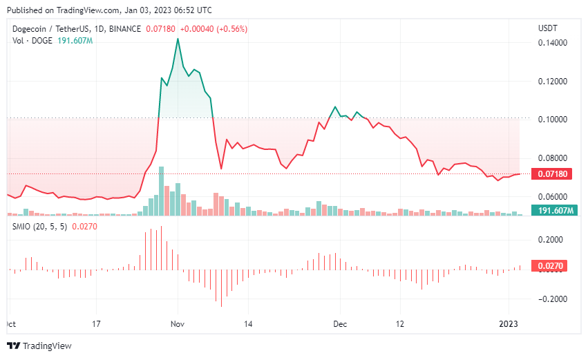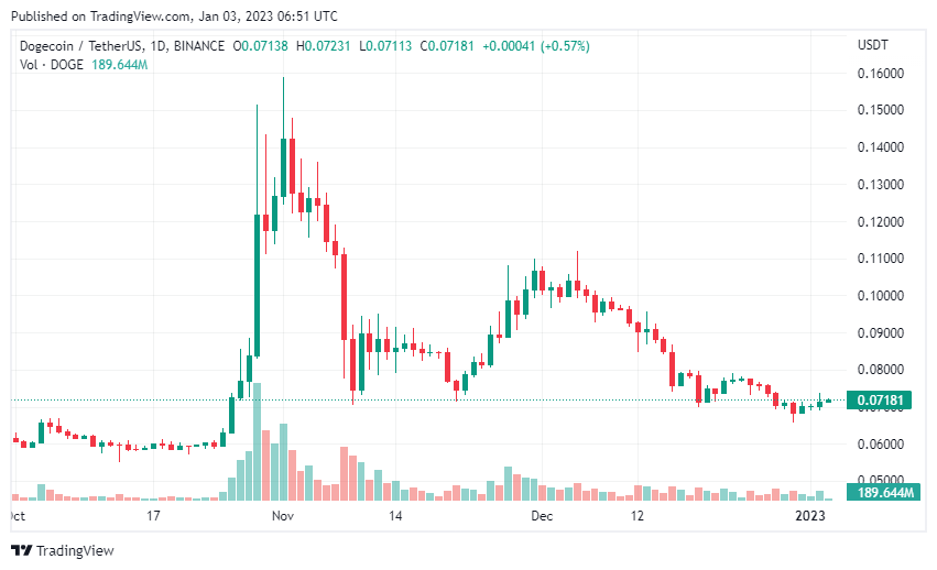 Dogecoin is up 2.61% in the last 24 hours