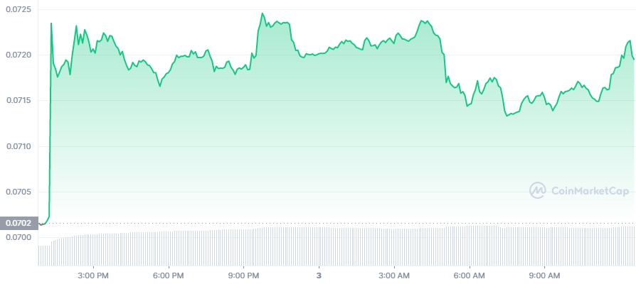 Dogecoin price today is $0.071980 USD with a 24-hour trading volume of $400,456,760 USD.