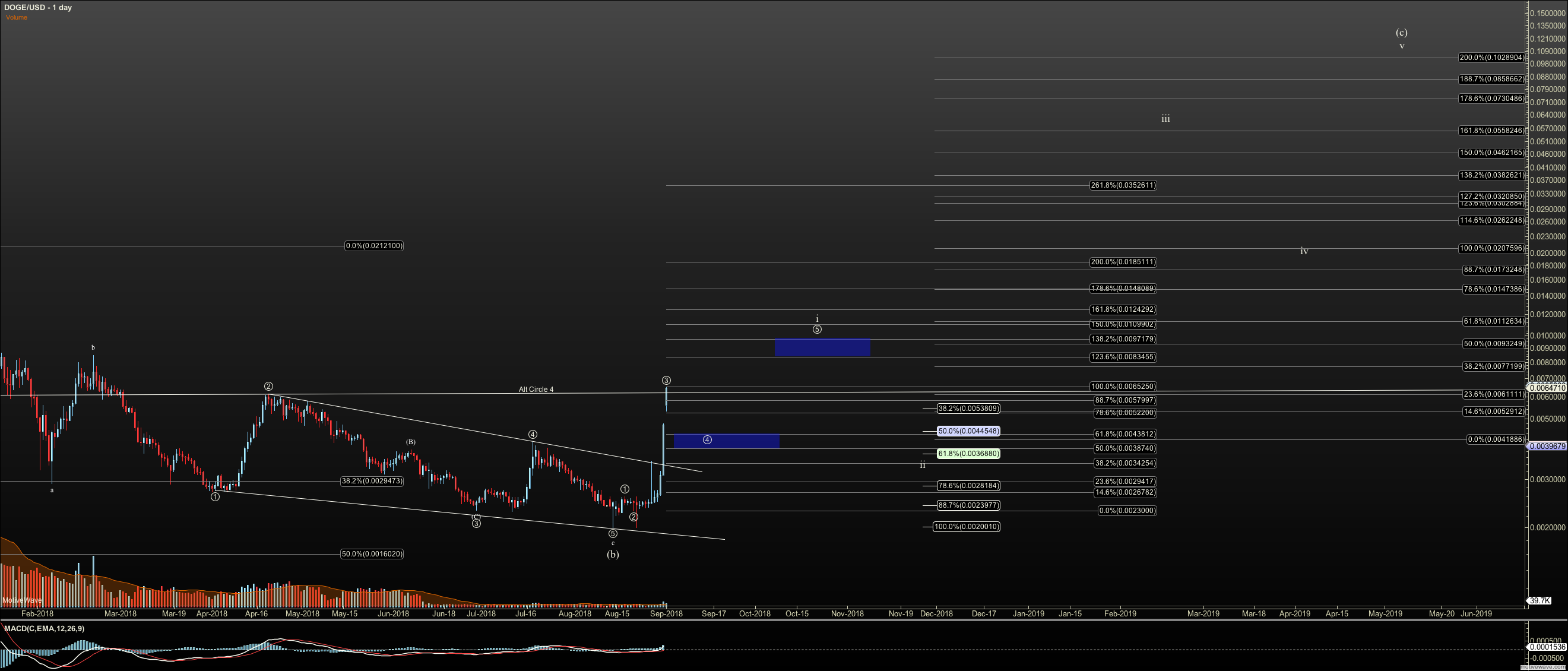 Truth is, I've been bullish on Doge for a long time. This is purely trader thinking based on the charts. I don't see much fundamental value in the Dogecoin, other than it being a clone of early bitcoin. But in the end of the day, what makes a basic payment coin, with similar code better than another.? Really, this comes down to market sentiment. While 'modern' bitcoin has seen some forks, DOGE's code, as I understand is very close to the original bitcoin code, yet is worth much less. That alone is not a reason to buy. But the chart is, with it eventually pointing north of 10 cents. Sentiment speaks, and someone is buying, at least for a trade.