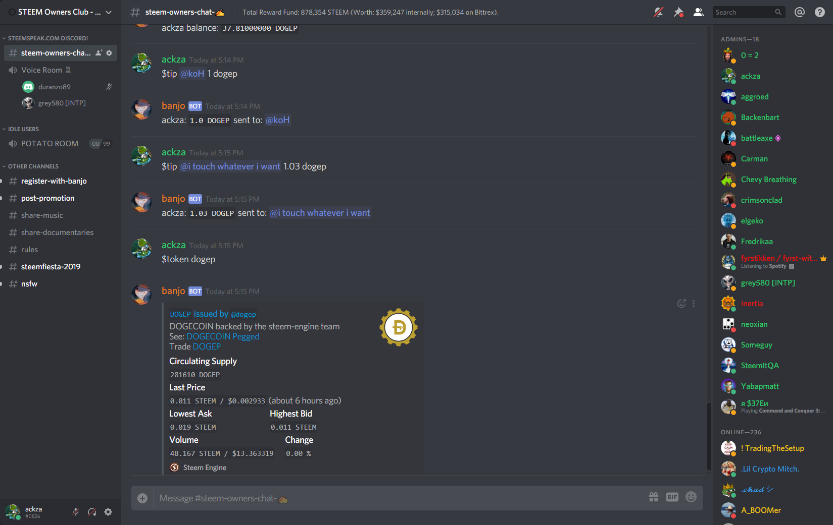 Anyway I will be making https://SteemSpeak.com discord the HOME of DOGECOIN temporarily and invite everyone from Reddit's r/dogecoin to come receive FREE dogecoin then they will need a STEEM account to withdraw :D sneaky sneaky right? @ned and @andrarchy and @elipowell should take note and realize THIS is the best way to get people interested in steem, send them some Doge or LTC or Bitcoin with Steem-engine tokens, to their DISCORD accounts, so they will NEED a steem account to be able to withdraw it ;)