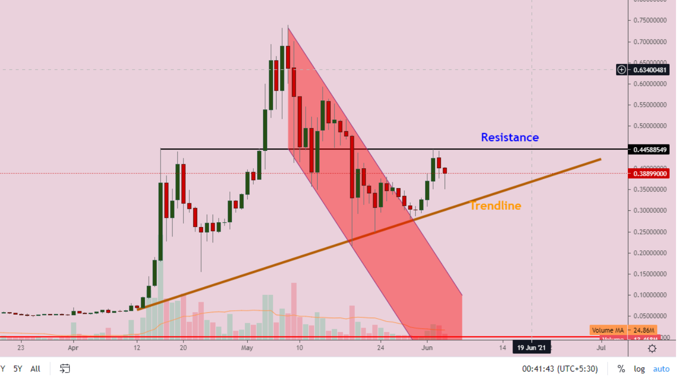 To resume its upward journey price of doge need to cross $0.44 mark and it should remain above trendline.