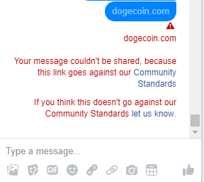 I just viewed a reddit post showing facebook blocking a message which contained dogecoin.com which is really outrageous and it shows that facebook is not ready for crypto
