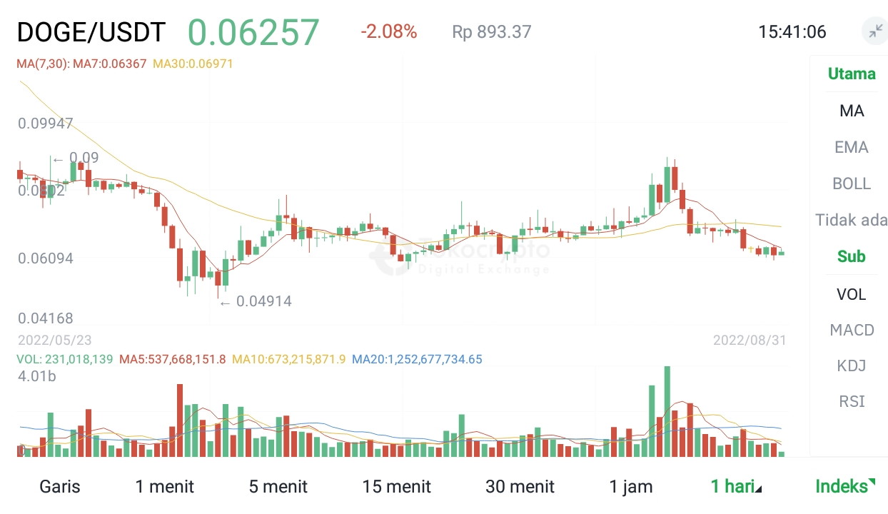 DOGE/USDT 31-08-2022