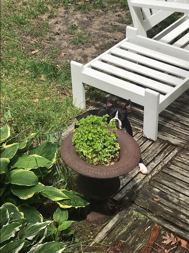The rain finally stopped and he’s getting some fresh air...but not without his eyes on the door.