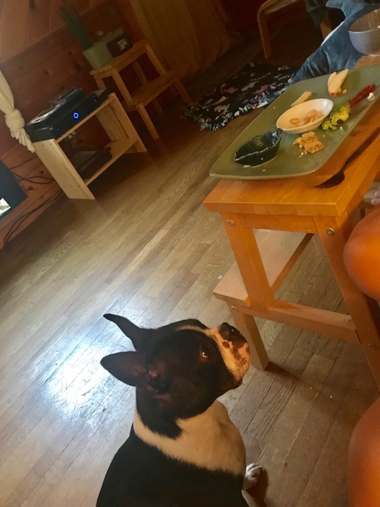 Now, coming up on 8 months in our family, we are able to have food very close to his face without too much thought on him taking it or jumping on us.