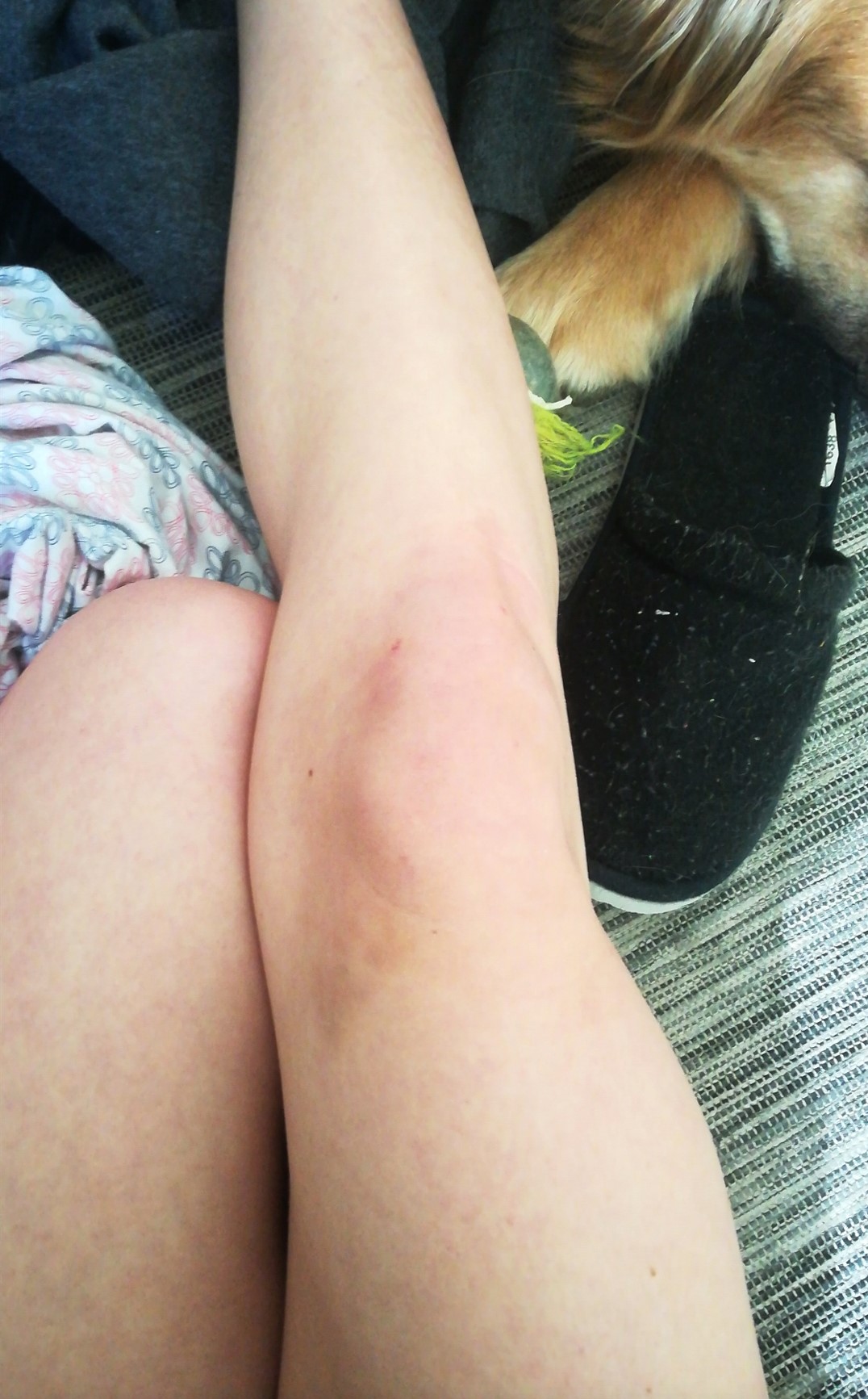 and.... he snapped my leg .. it was an accident I know he didn't mean it but he got me good 🤕