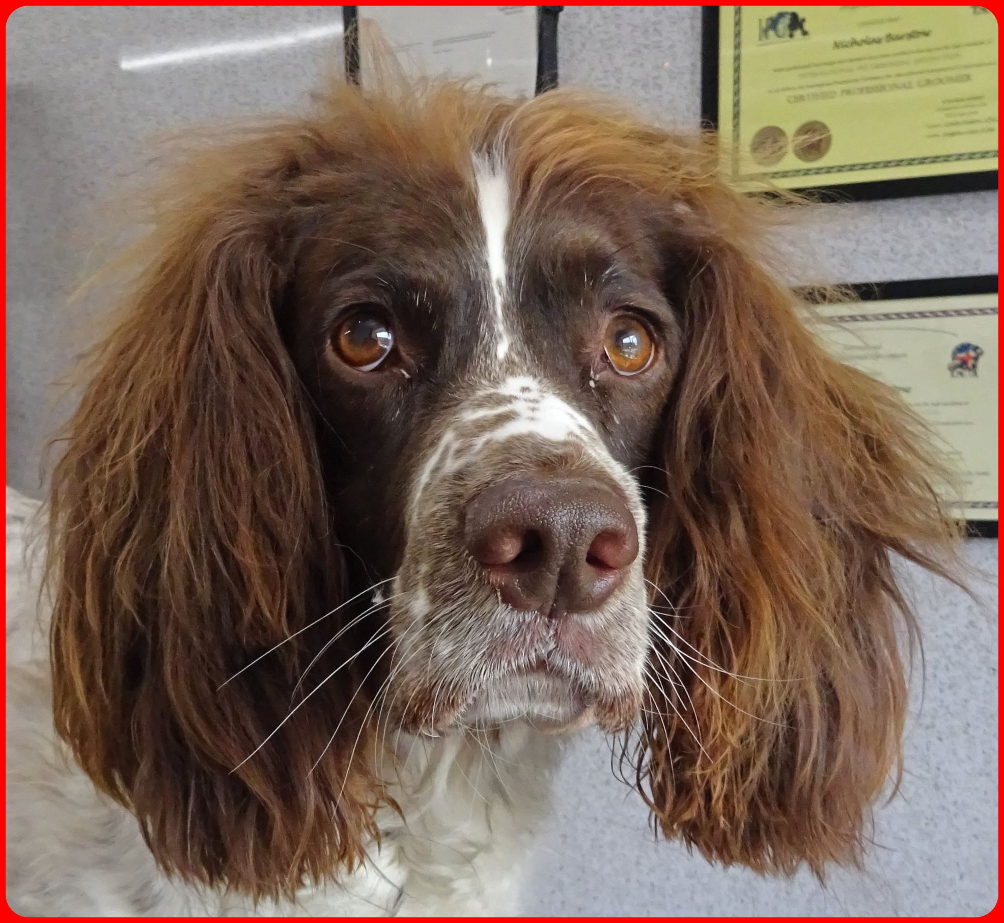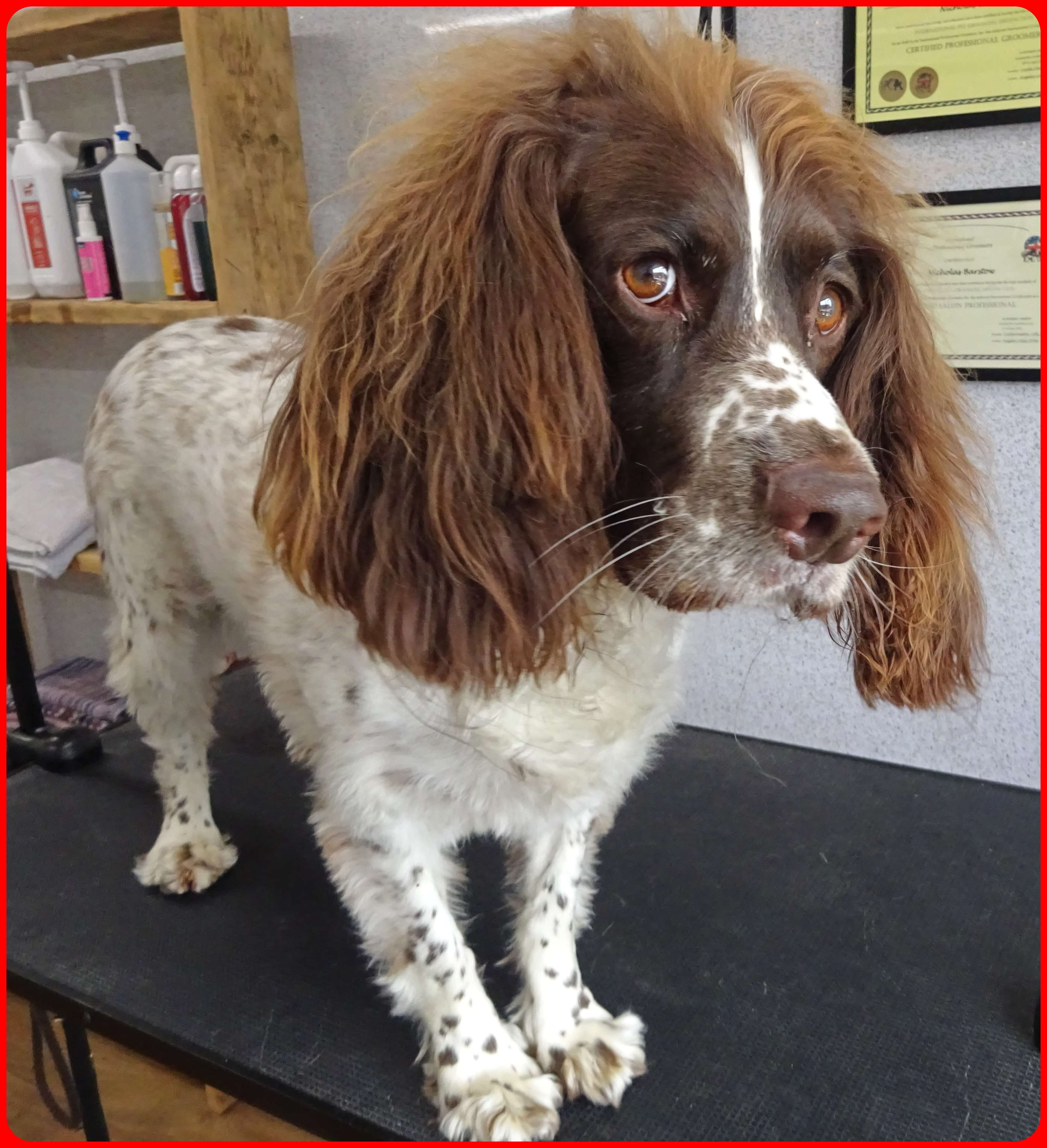 Normally Springers live up to their name and will bounce around the grooming table full of pent up energy.