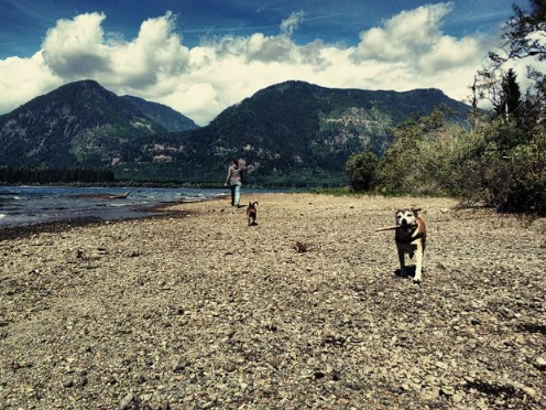 Lake Cowichan with the gang. As usual -- Helo is unstoppable and only concerned with ... - @mstafford