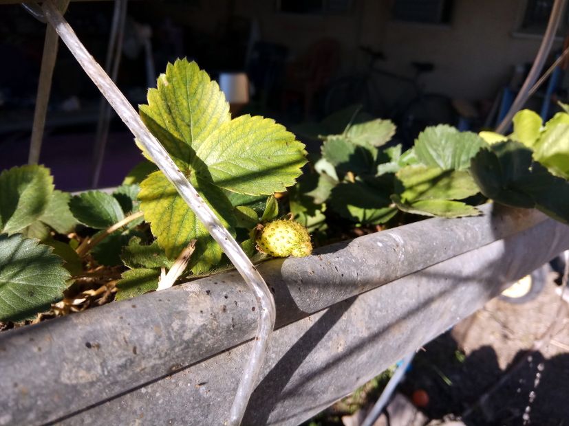 So I hung them up that way, and put some soil and plants of strawberries and a lettuce:
