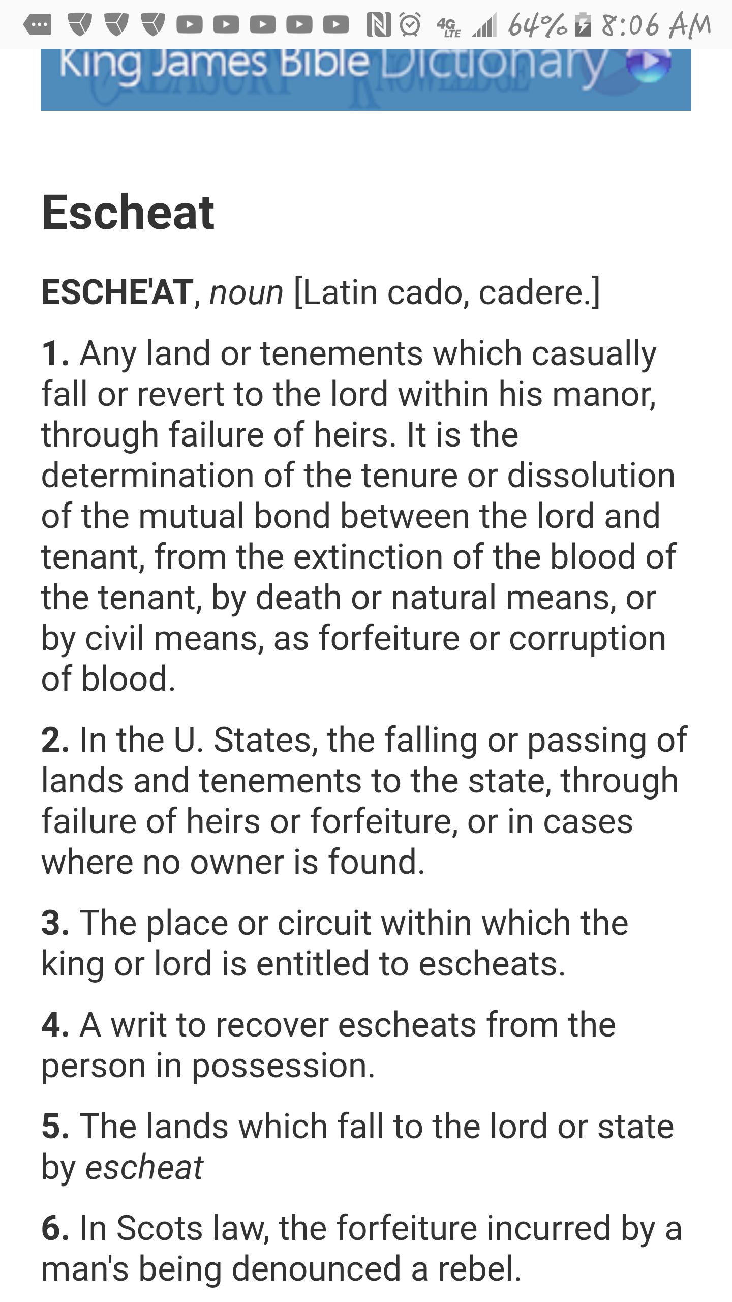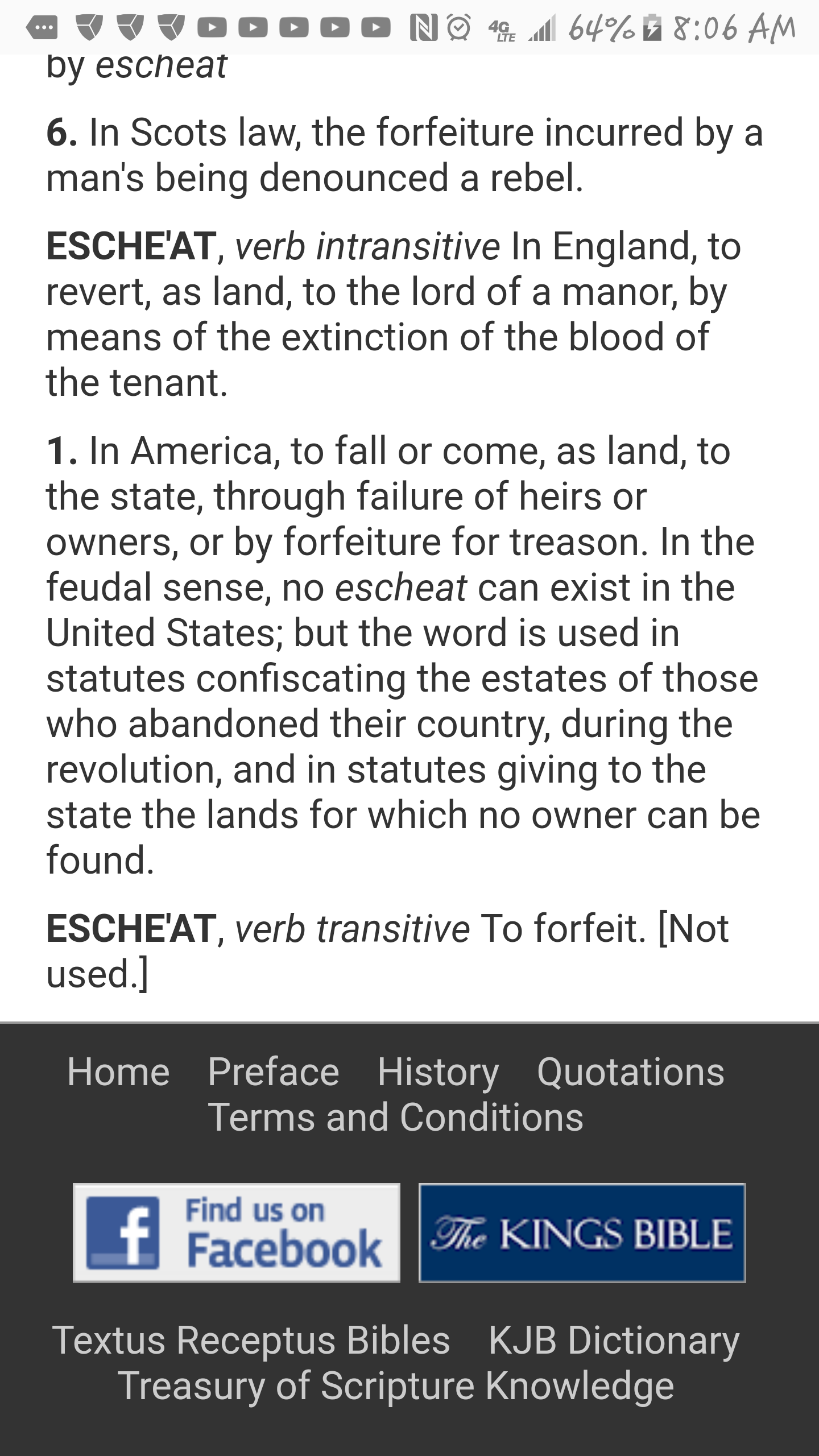 The following is the definition of 'Escheat' taken from Webster's 1828 dictionary.