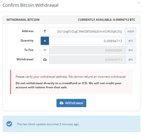 I came out with 0.09894713 BTC which I immediately withdrew to my personal Bittstamp account.