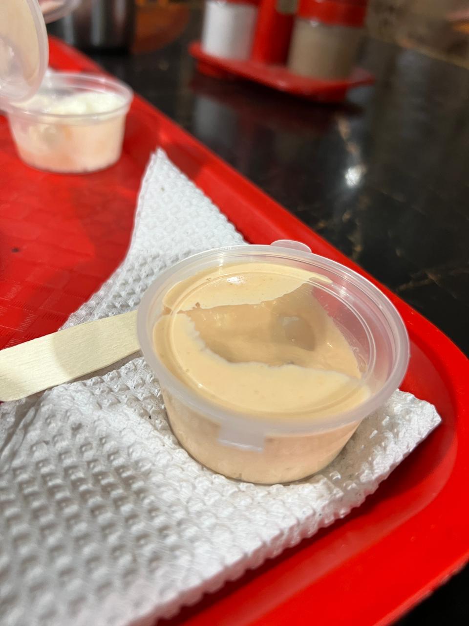 With shawarma you can also see the sauce which served them to customers. it gives more taste and look creamy. there is also a clean working like if you look to try which were served clean. you have to dipped the showarma with a souce and will feel more tasteful..