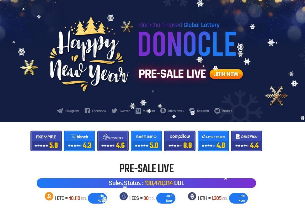 В настоящее время продажа токенов проекта DONOCLE подходит к завершению. Платформа для проведения лотереи будет выпущена в скором времени. Начало проведения лотереи планируется на 2-й квартал 2019 года.