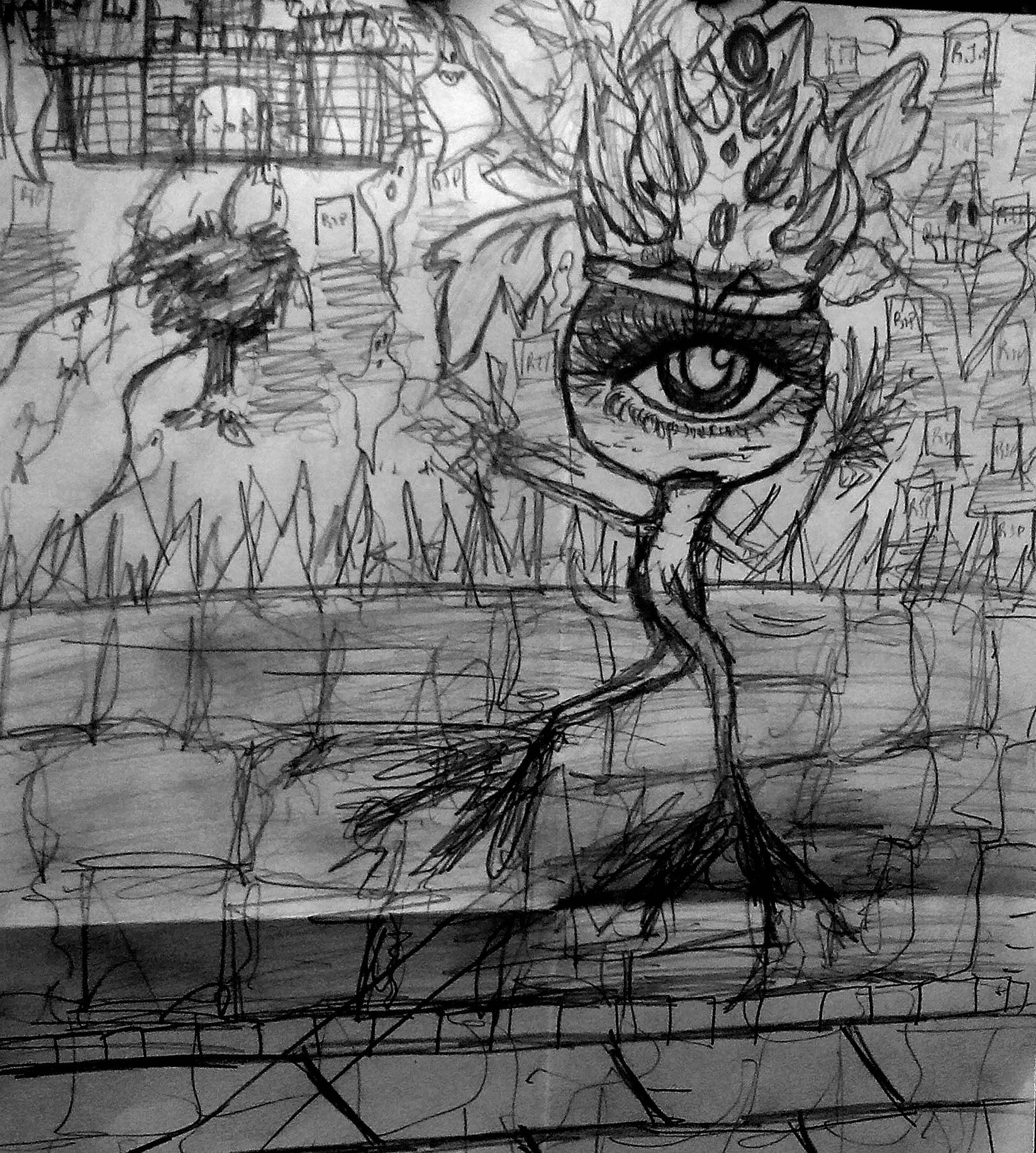 i feel this doodle is telling us a story. Is the turnip princess fleeing the castle? Is the castle haunted?