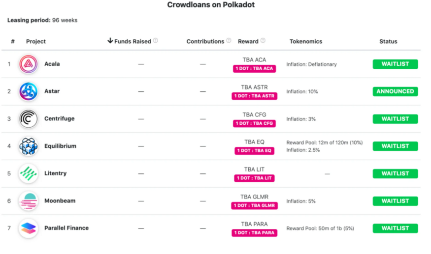 Projects Announcing Parachain Bidding Plan