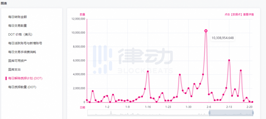Statistics show that from January 24 to February 20, over 55 million DOTs will be unlocked from staking across the entire network - a specific amount of 55,562,626.19.