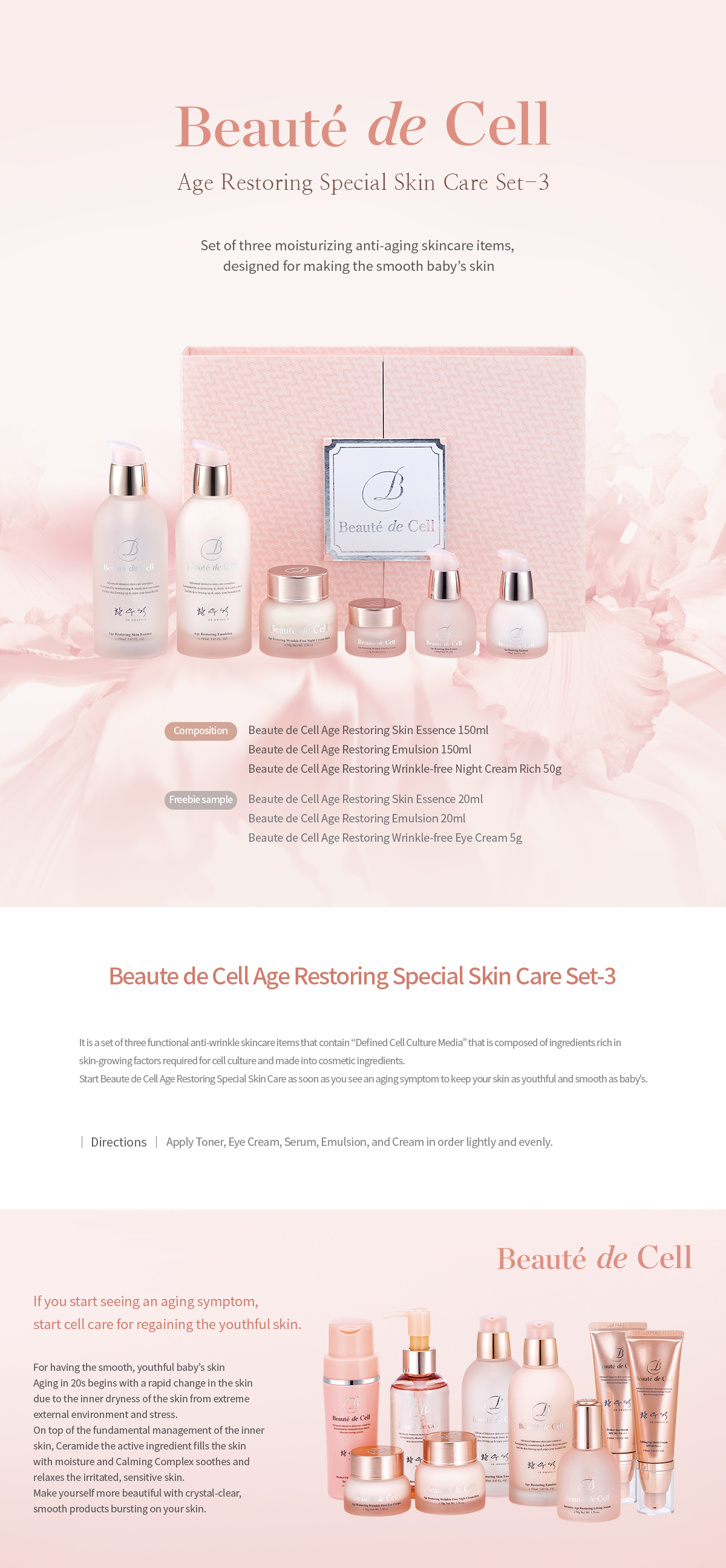 Beaute De Cell is for the skin of women aged between 20s to late 30s who start seeing aging symptoms. If this is you, start Beaute De Cell!