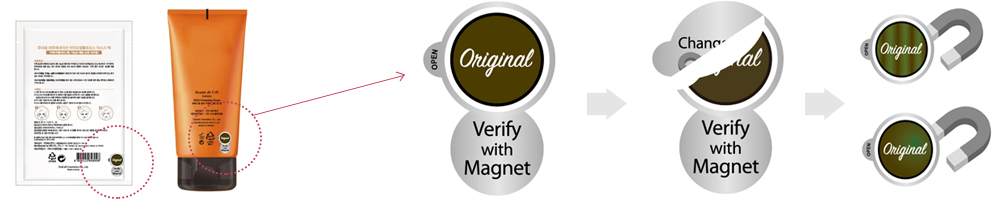 3. Place magnet on the back of "Original" label and it will change color, which proves authenticity.