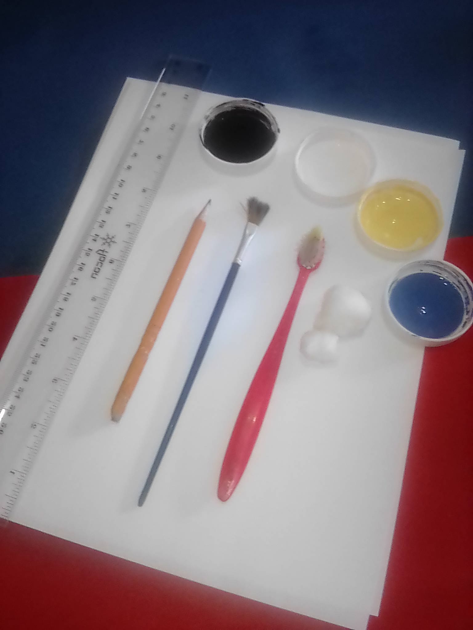 -Pinturas azul, negra, amarilla y blanca