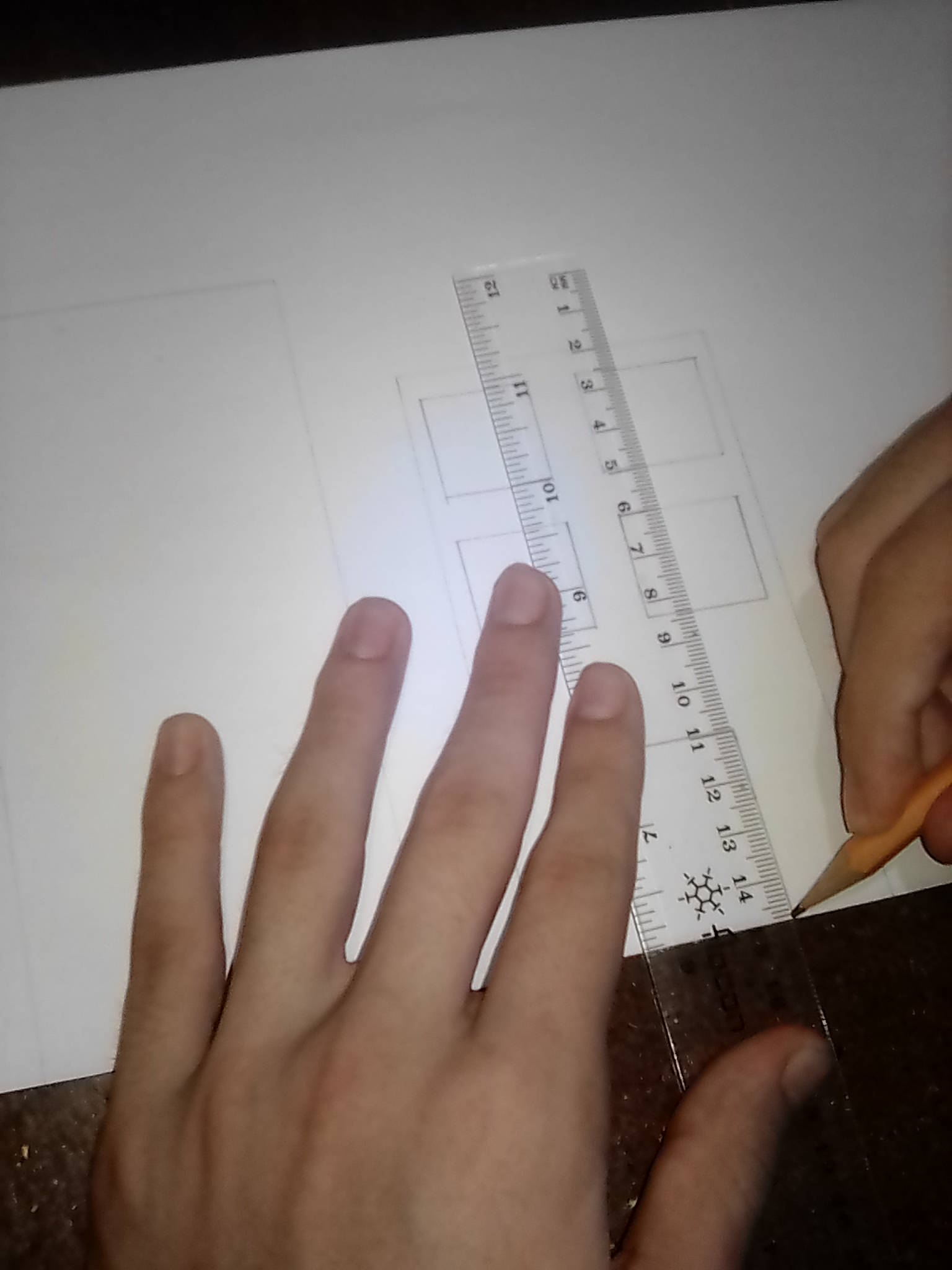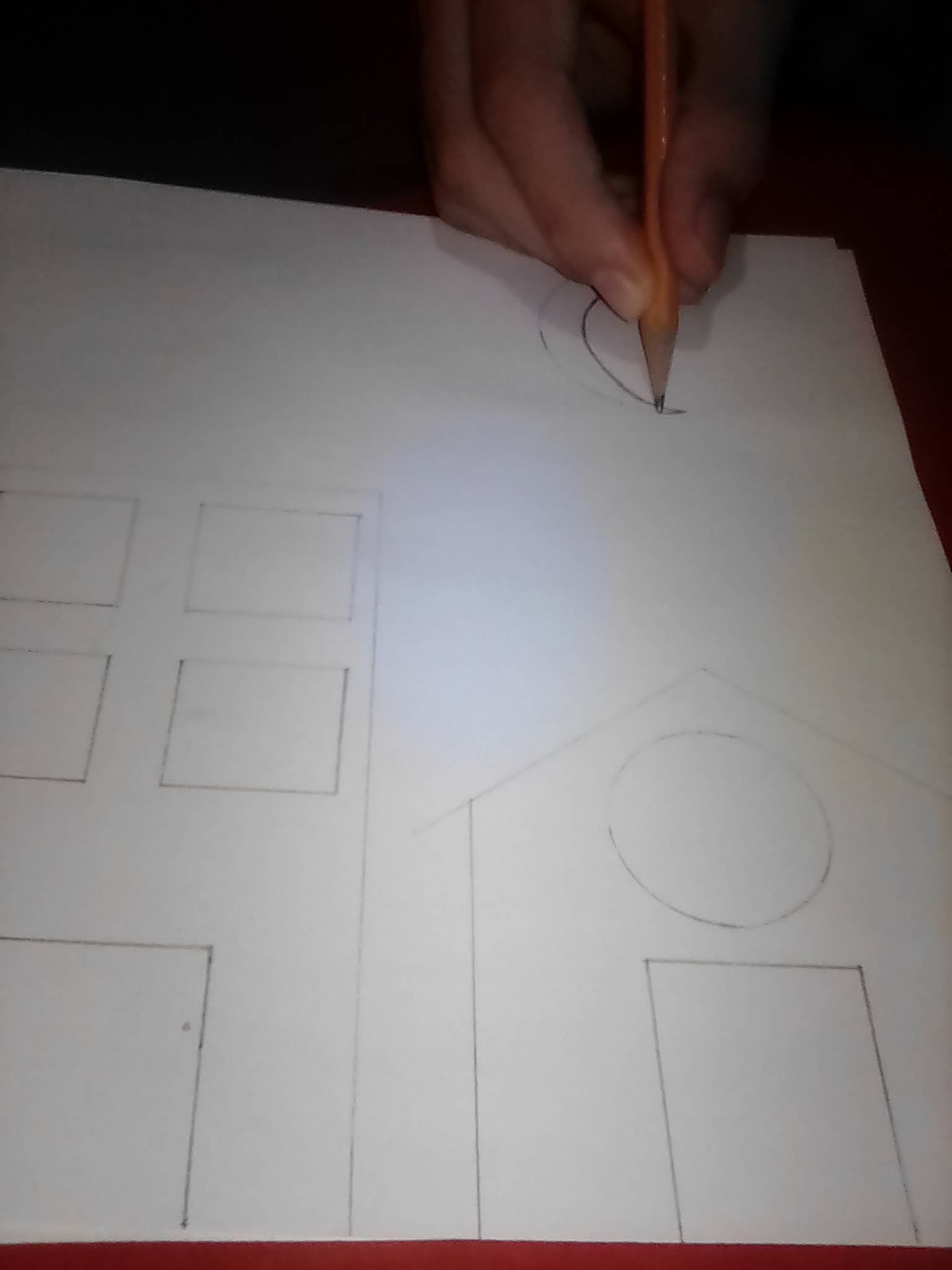 Paso1:Hago la plantilla para la pintura dibujando las siluetas de los edificios, la casa y las ventanas y puertas.