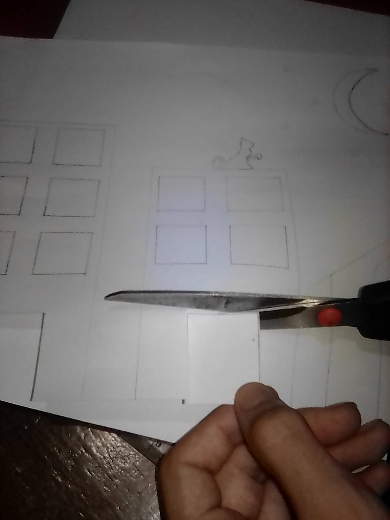 Paso 3:Recorto las puertas y ventanas de los edificios y la casa para pintar en sus espacios vacios.