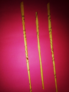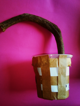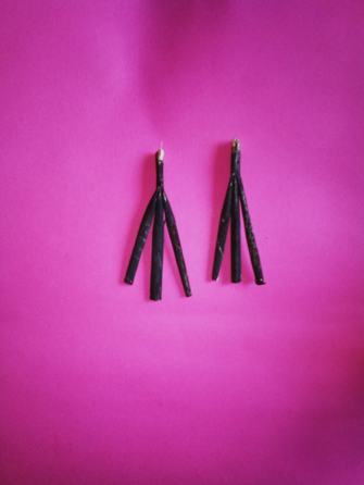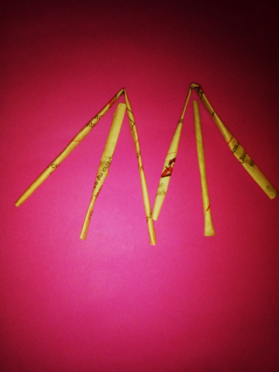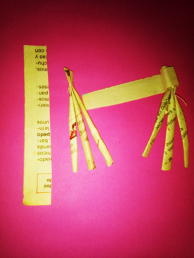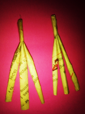 Luego use hilo para amarrarlas, por ultimo cubrí con una cinta de papel la parte del amarre y pinte las patas de un color negro.