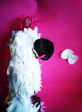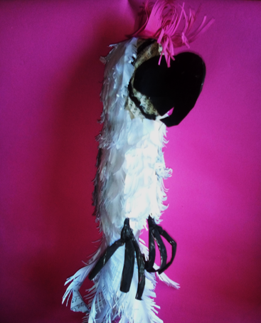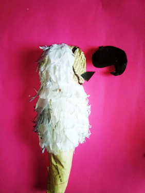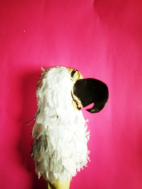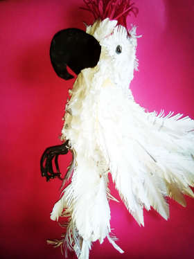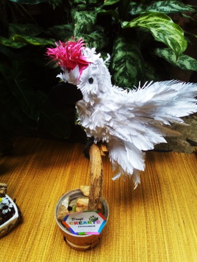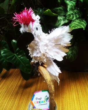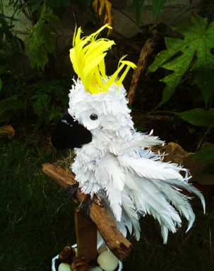 Termine de rellenar con plumas la parte de los ojos, luego coloque las alas y los ojos y este es mi resultado de como elabore una linda cacatúa.