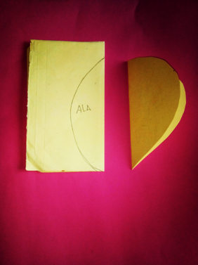 Para las alas corte un cuadro lo doble a la mitad y dibuje una silueta de media luna las