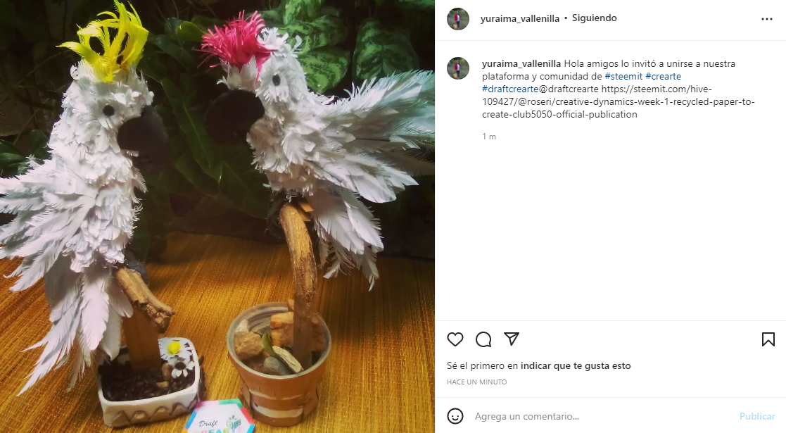 Saludo a todos los que integran a esta maravillosa familia de #DraftCrearte, y a @roseri que cada día nos sorprende creando nuevos concursos, hoy les comparto un lindo proyecto realizado con hojas recicladas, no tenia idea de como iba a quedar ya que es mi primera vez haciendo este tipo de manualidad me tomo tiempo en realizarla, decidí hacer una cacatúa, me gusto tanto este proyecto ya que el resultado final fue mejor de lo que esperaba así que me anime a realizar una segunda cacatúa, espero les guste.