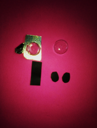 Para los ojos utilice la tableta de pastillas y cartulina negra, cortando dos círculos de la tableta y dos círculos de la cartulina.