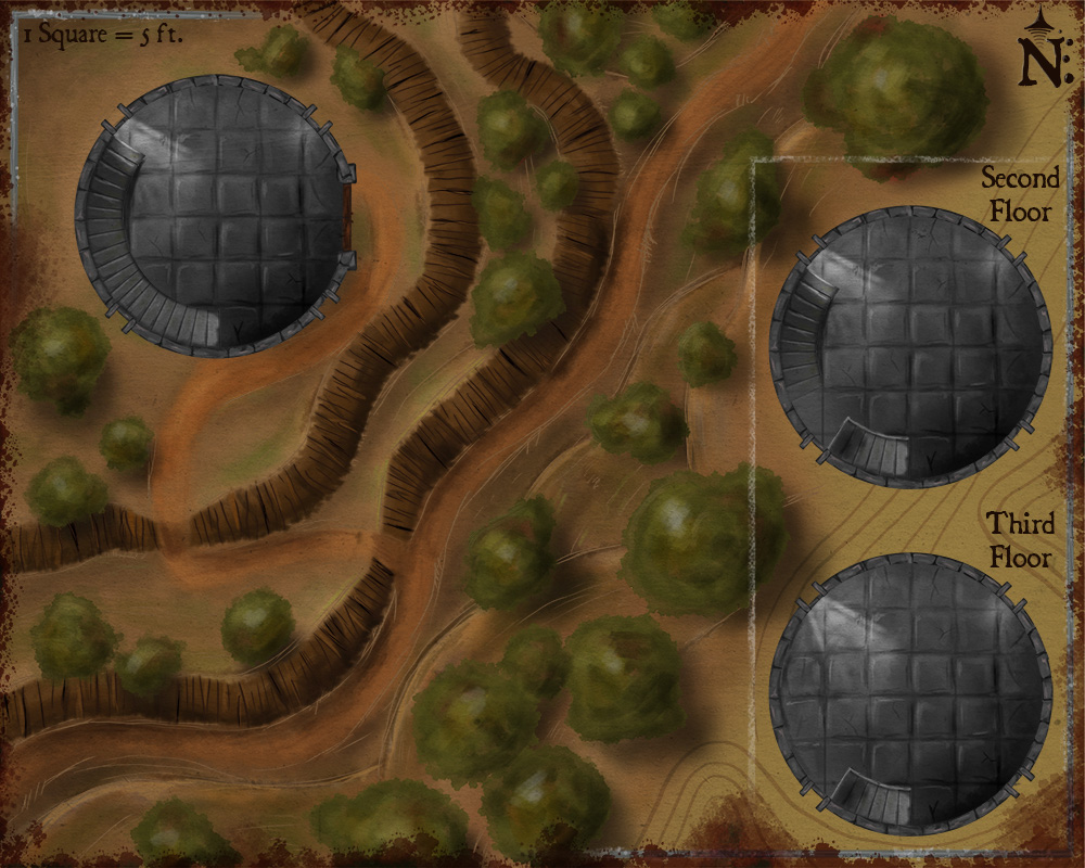 Strange reports from the countryside have brought attention to the old tower near the border. People reported missing and strange cattle injuries are the hearsay in the little towns near the place. The tower was taken by Ruffenderk, a goblin mage. He is the leader of his clan. A few weeks ago they were traveling in search of a place to stay temporarily when they came across the abandoned tower. Since the tower showed signs of no recent use, they took it. The tower is built in a defensible position due to the very nature of its purpose.