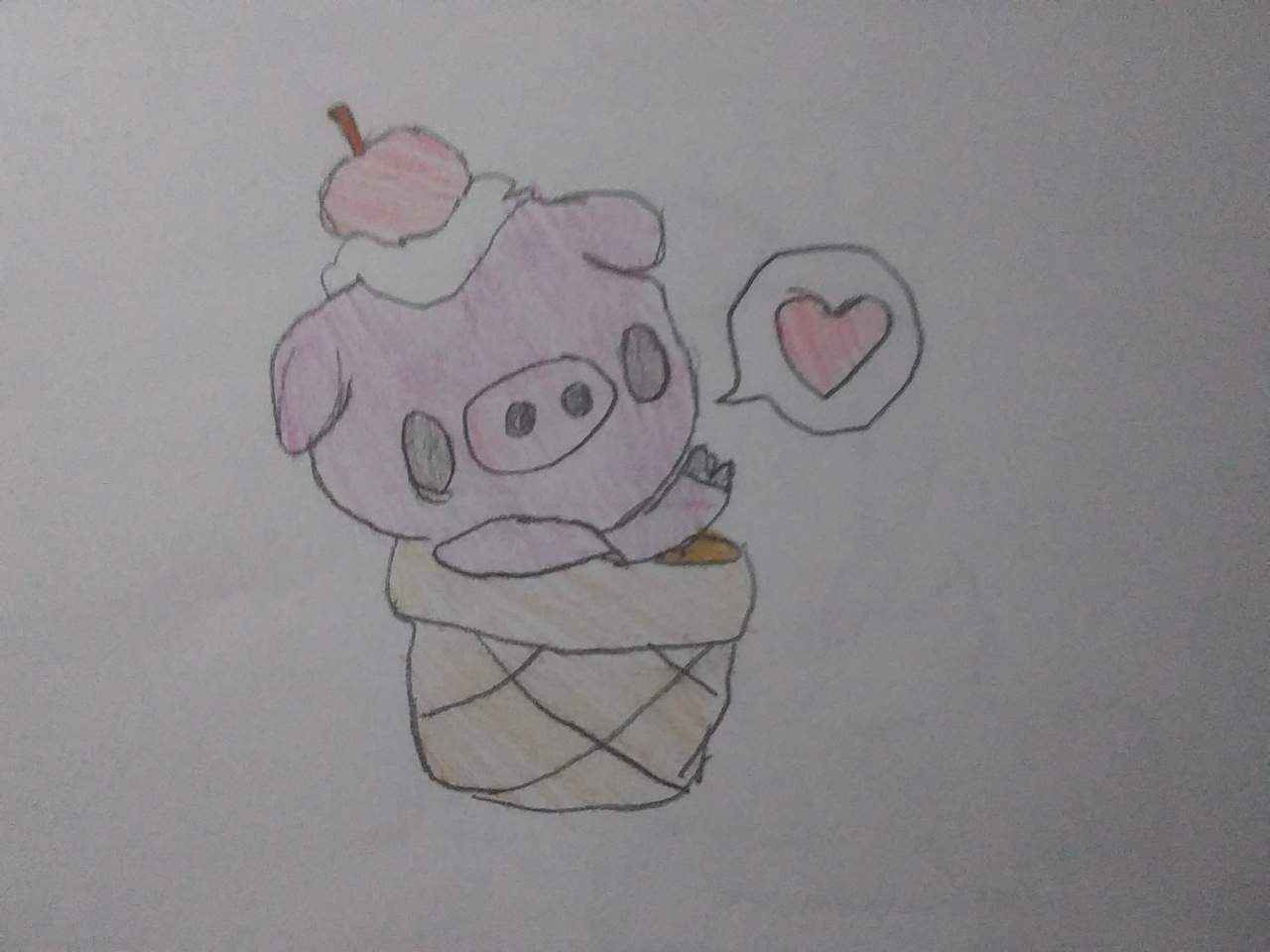 hier ,ma soeur a dessiné un cochon (pour le nouvel ans).Elle a dessiné un cochon dans une crème glacé