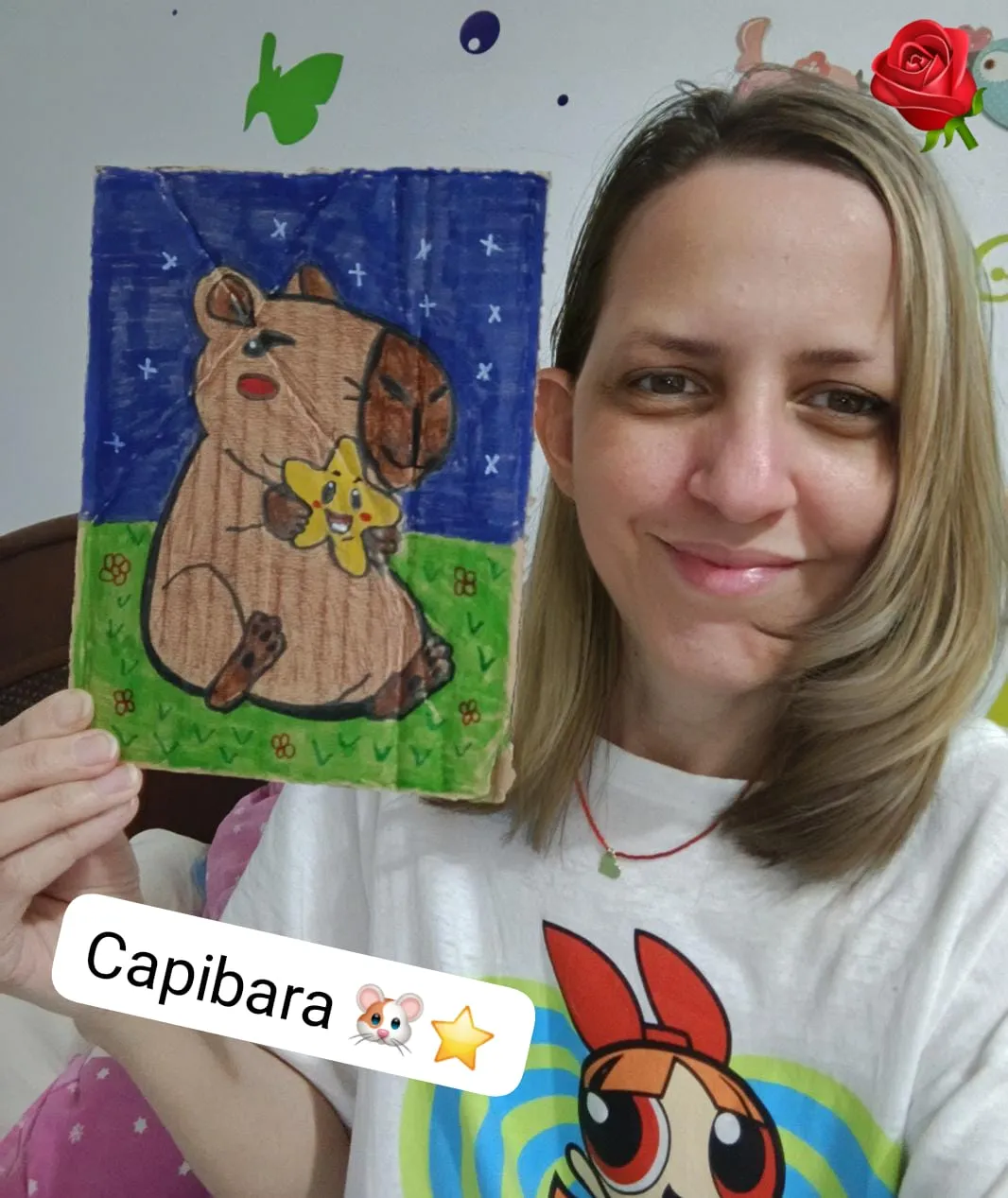 Capybaras are such cute and adorable rodents; that's why they inspired me to draw one on cardboard. So, I wanted to share my fan art of a cute capybara playing with a starfish.