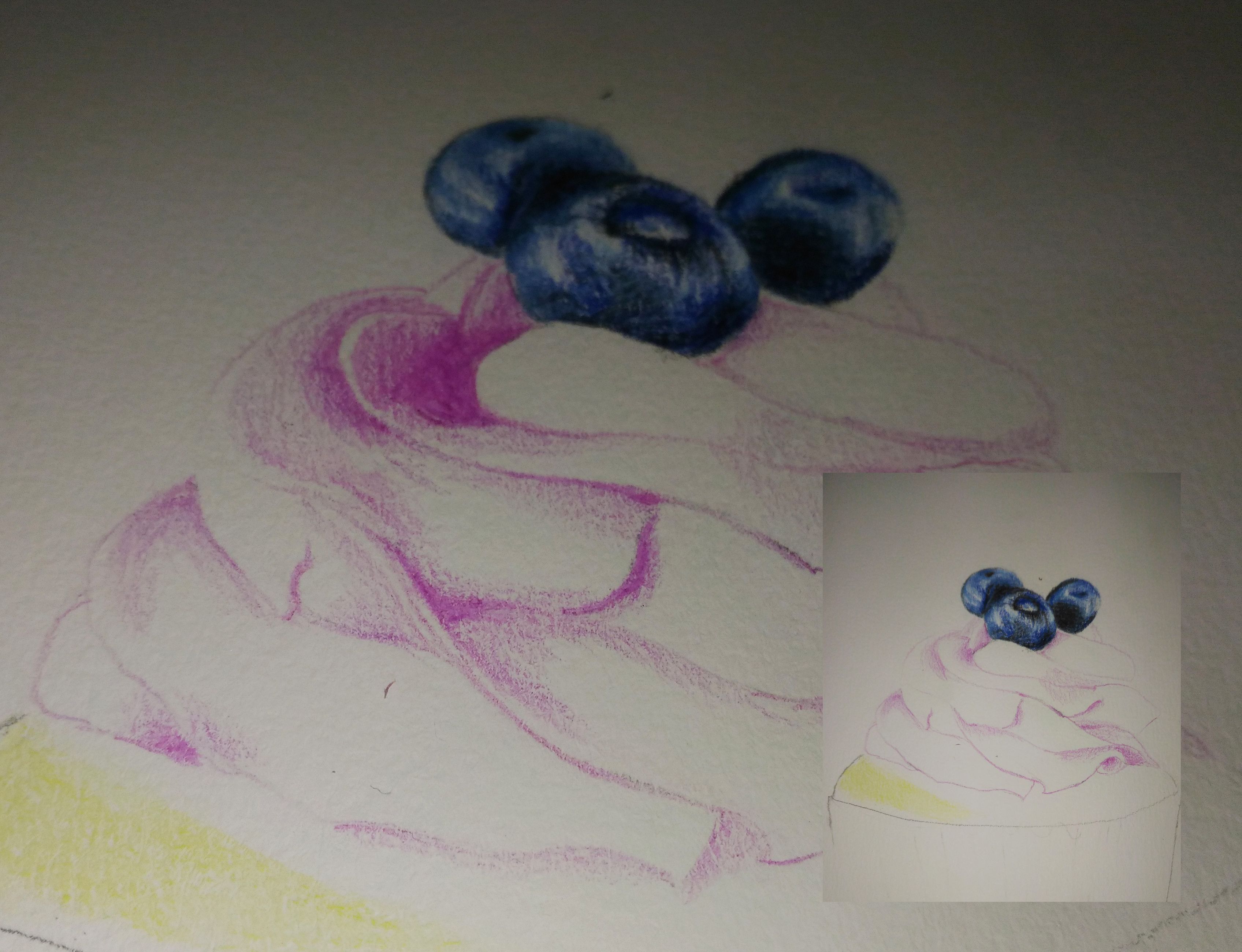 Overflowing Artwork no.1 : I drew a blueberry cupcake using the color pencil that steemit community has given to me