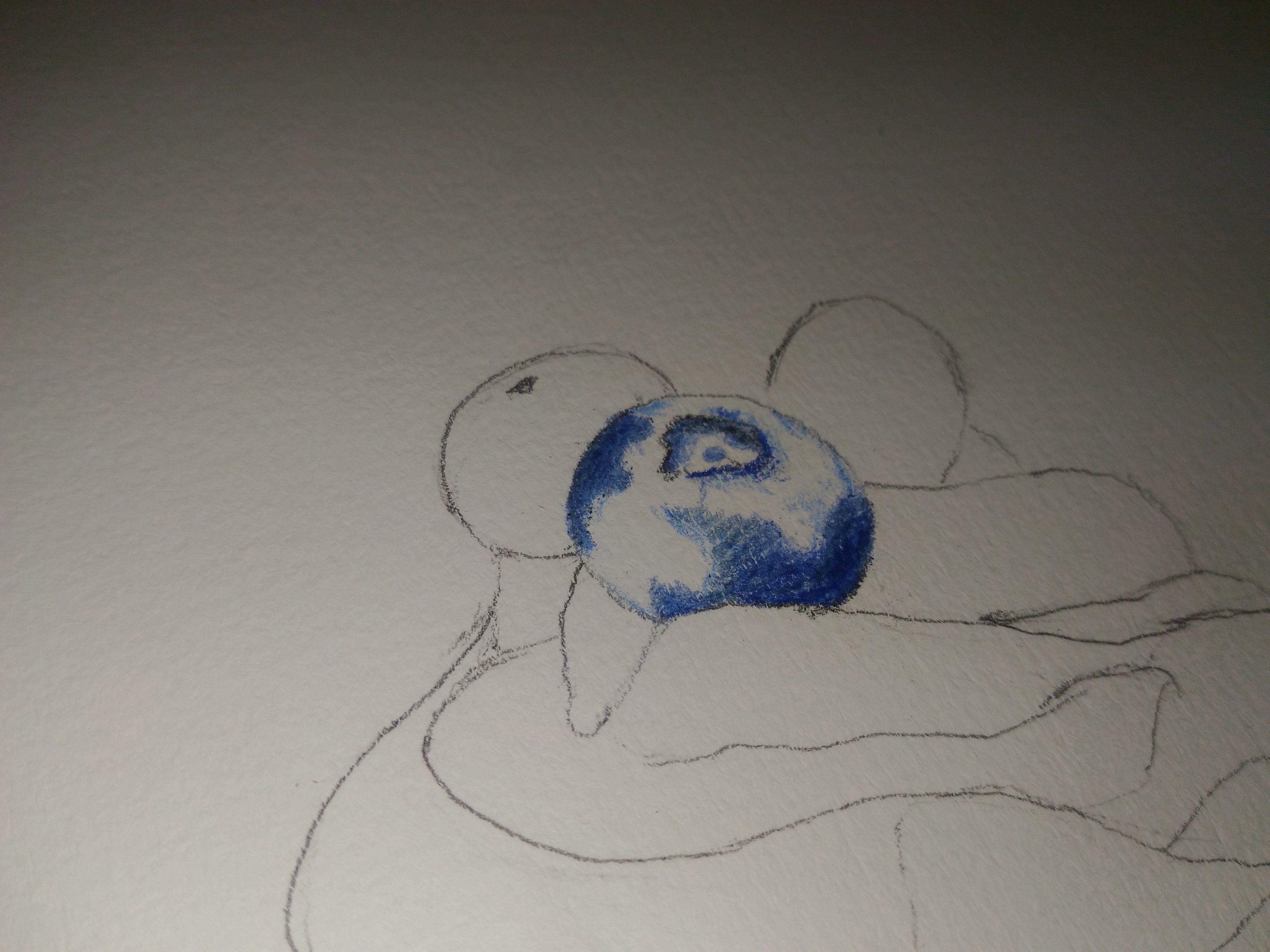 Let's put the color on the blueberry I used Prussian Blue, Ivory Black and some of Ultramarine and Spectrum Blue