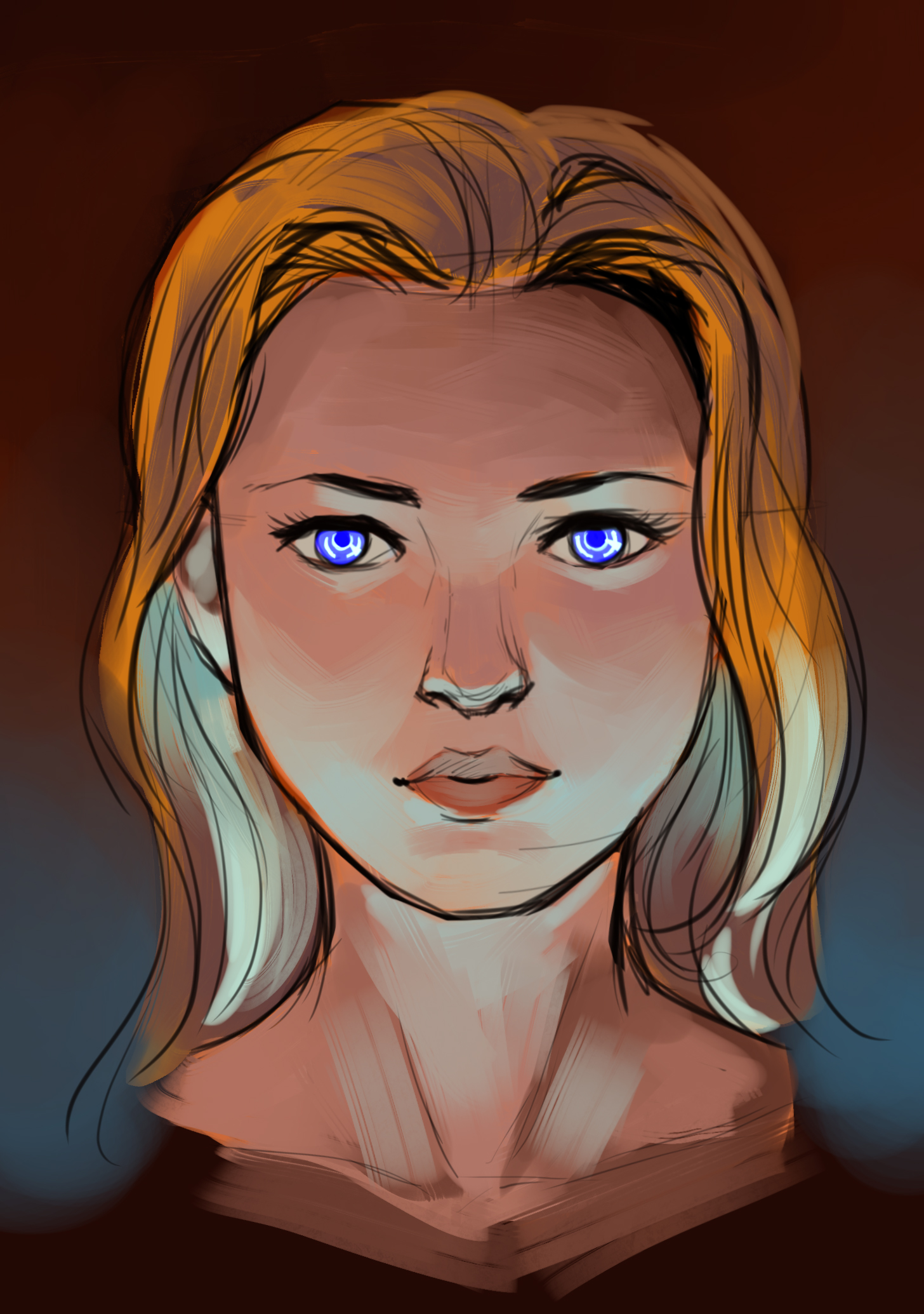 The lower blue lighting really underscores the intense blue in her eyes. Nicely rendered as well!