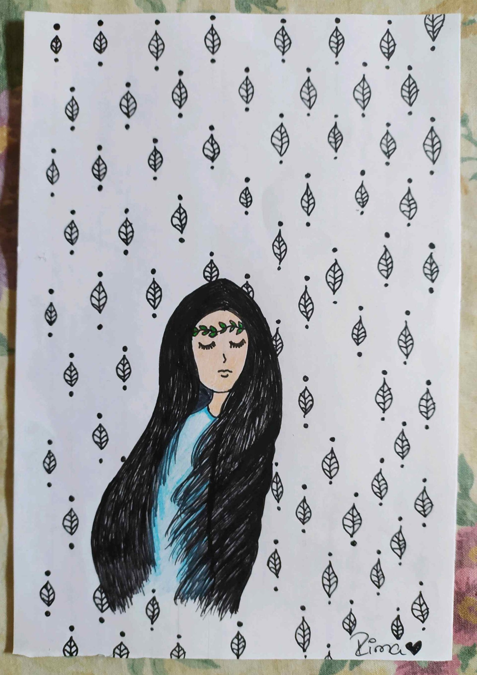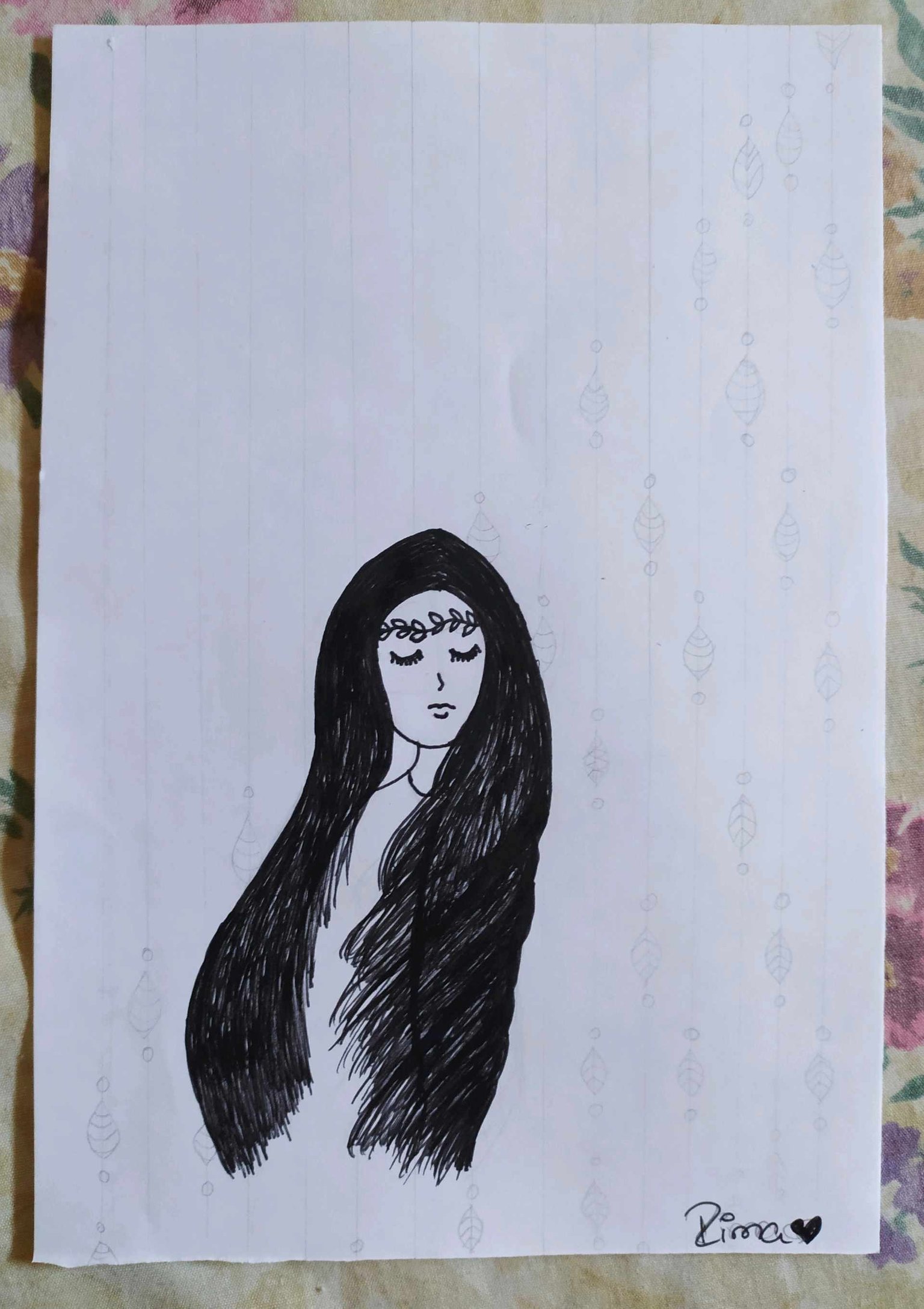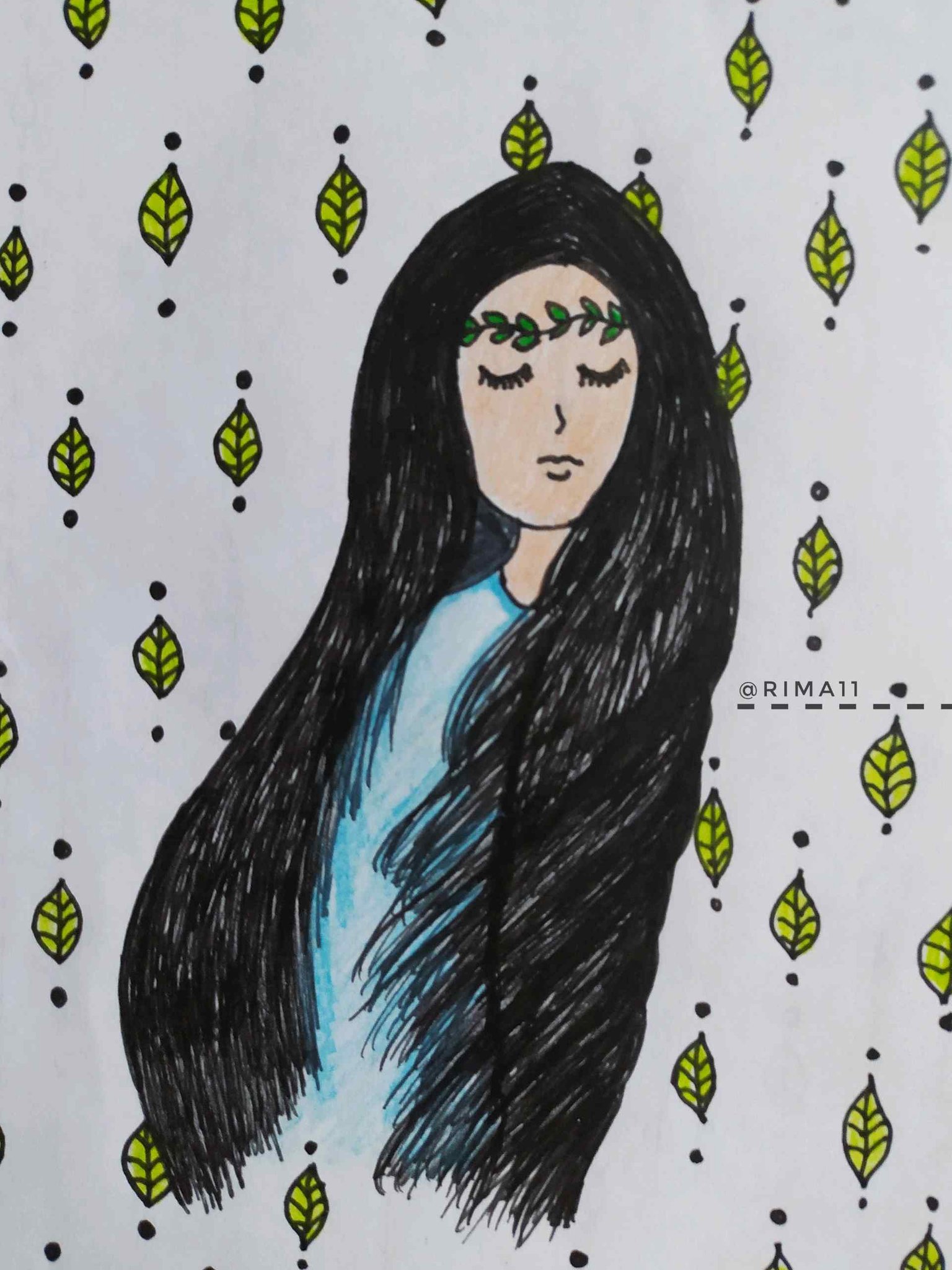 The drawing I present to you today came to my mind during yesterday's morning. I wanted to name it inner peace since for some reason I was able to imagine it this way, a girl being serene in all aspects. I hope you like it.