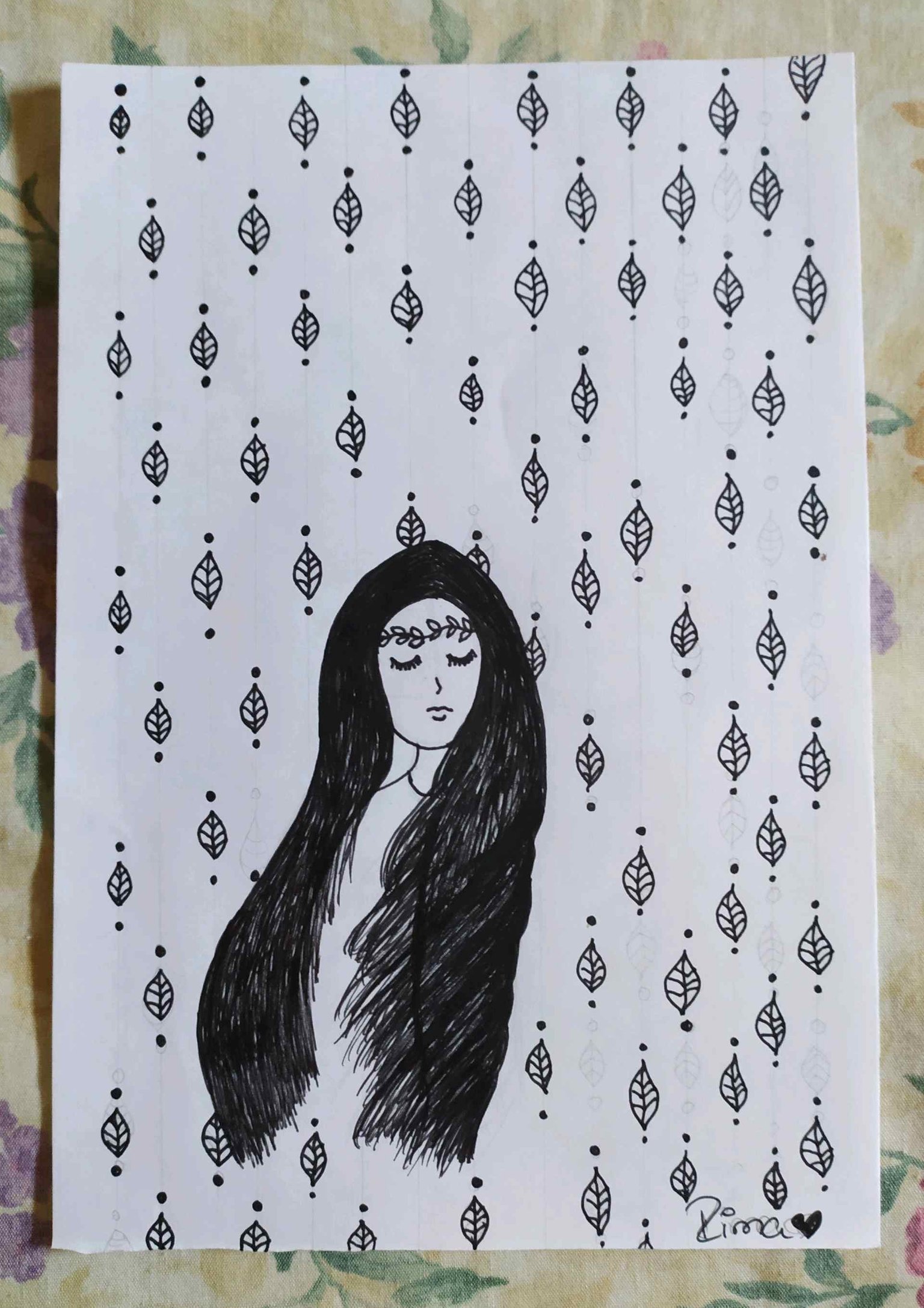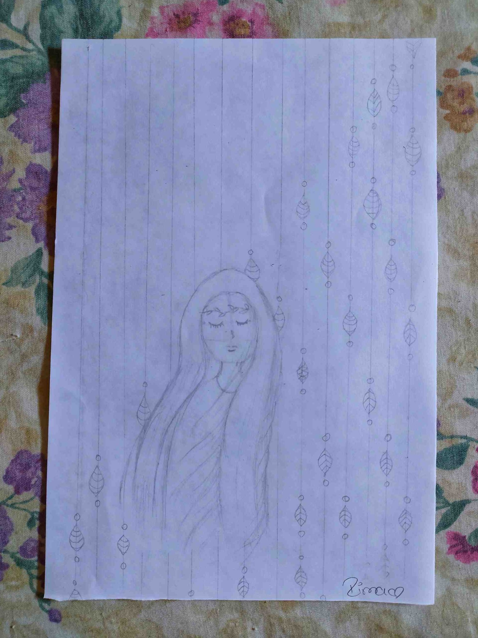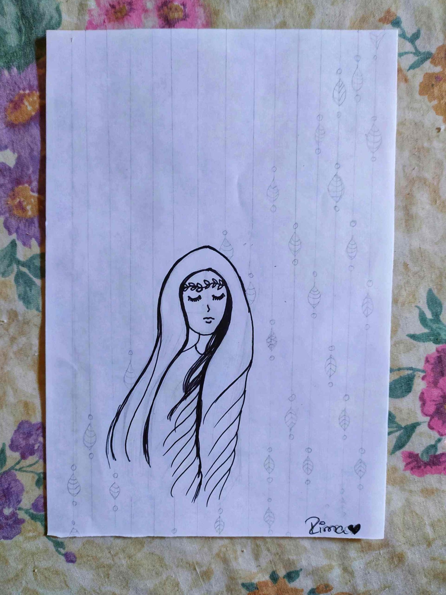 The drawing I present to you today came to my mind during yesterday's morning. I wanted to name it inner peace since for some reason I was able to imagine it this way, a girl being serene in all aspects. I hope you like it.