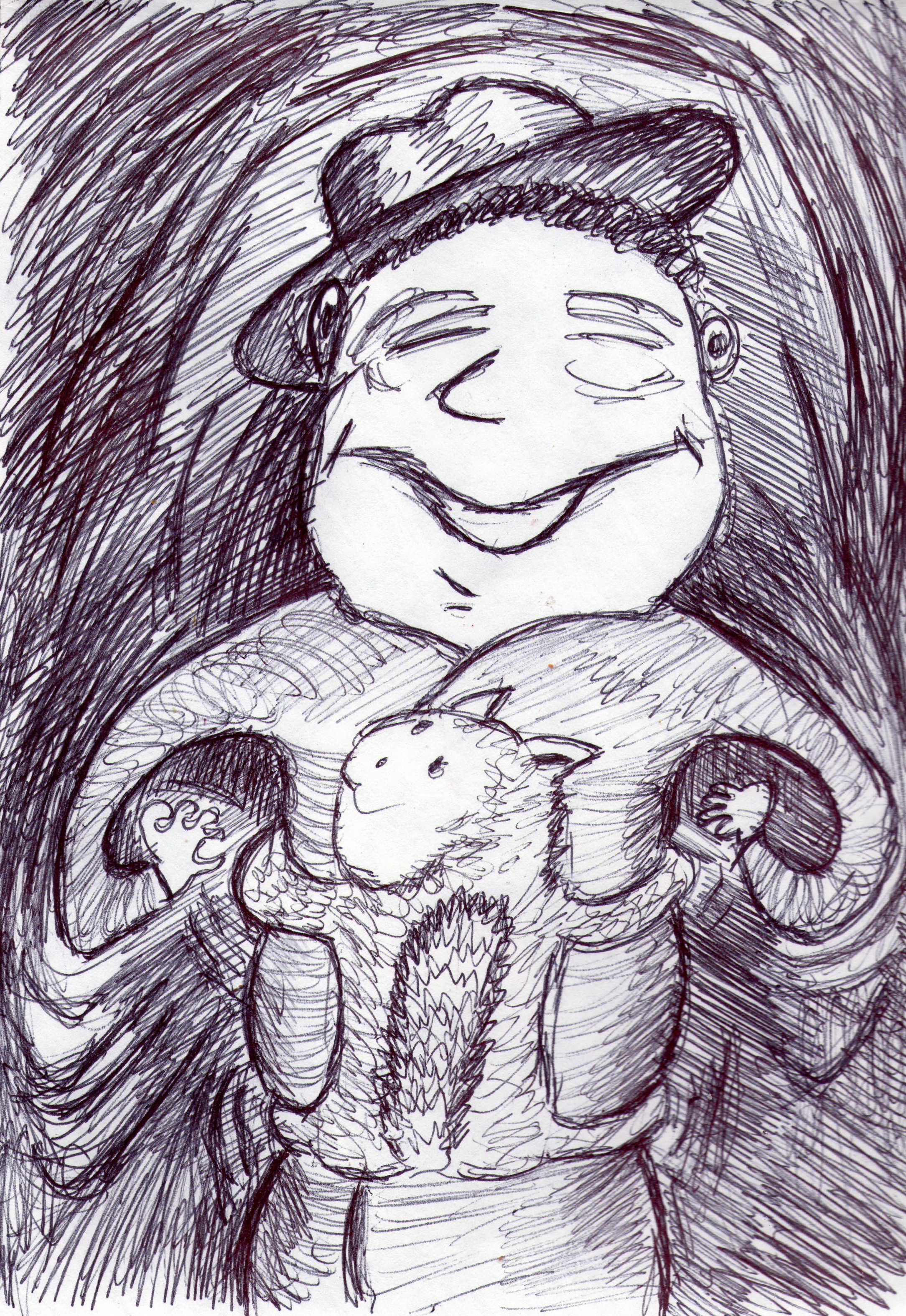 Рисунок шариковой ручкой и восковыми карандашами