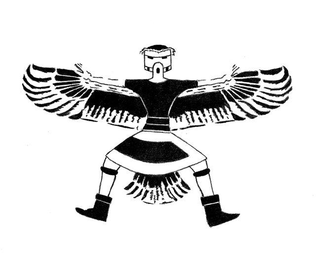 A friend of mine asked me to come up with some Native American tattoo designs. In this case, I used Kachina statues as inspiration. The Hopi tribe believes kachinas are supernatural beings who represent and have charge over various aspects of the natural world. They are often represented with feathers and birdlike masks. I was already trying to come up with a design to do blackwork, no shading, no fine details; so I thought this would be a perfect design to go with this kind of work. In the next two posts, I will show some more Native American designs.