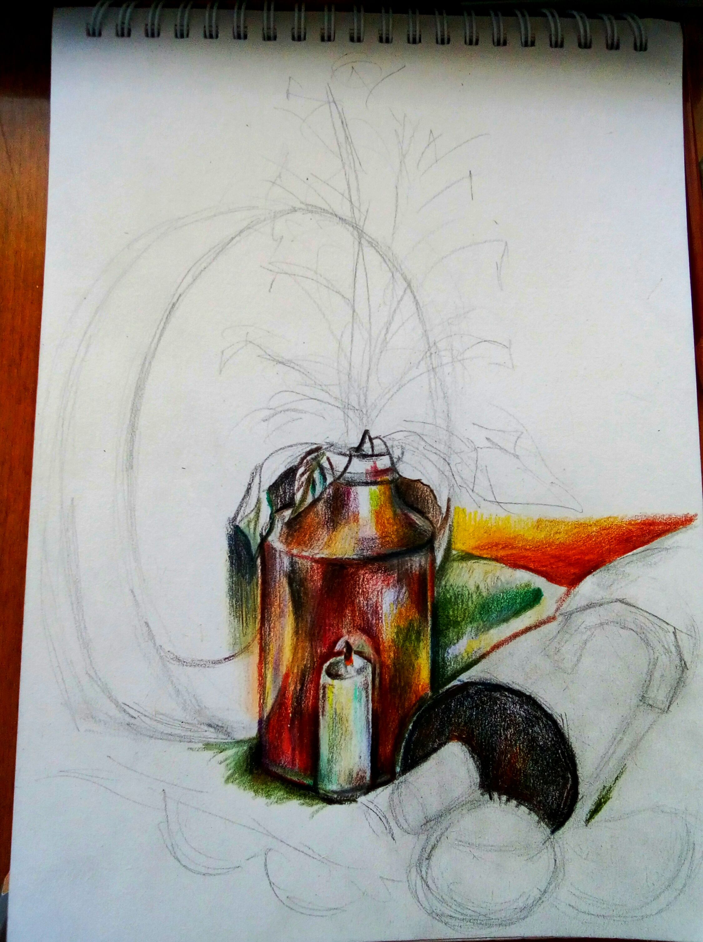 Today I want to show my new drawing - "Poor man's dinner or wine and cookies from chestnut".