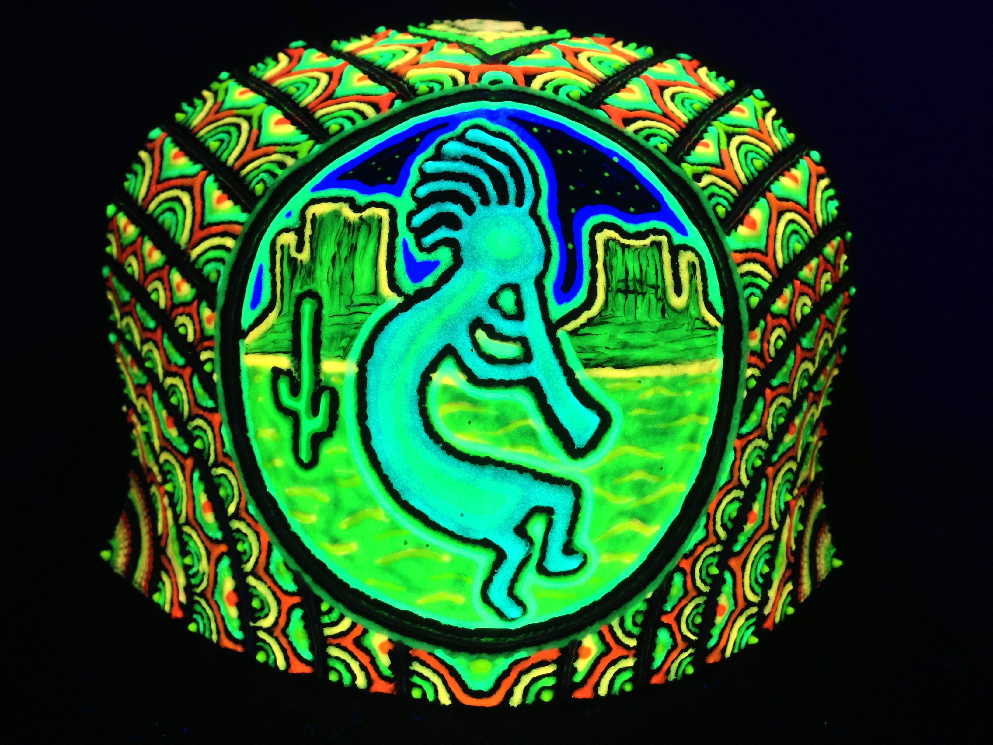 UV-Reactive painting of Kokopelli, the Hopi God of Fertility!