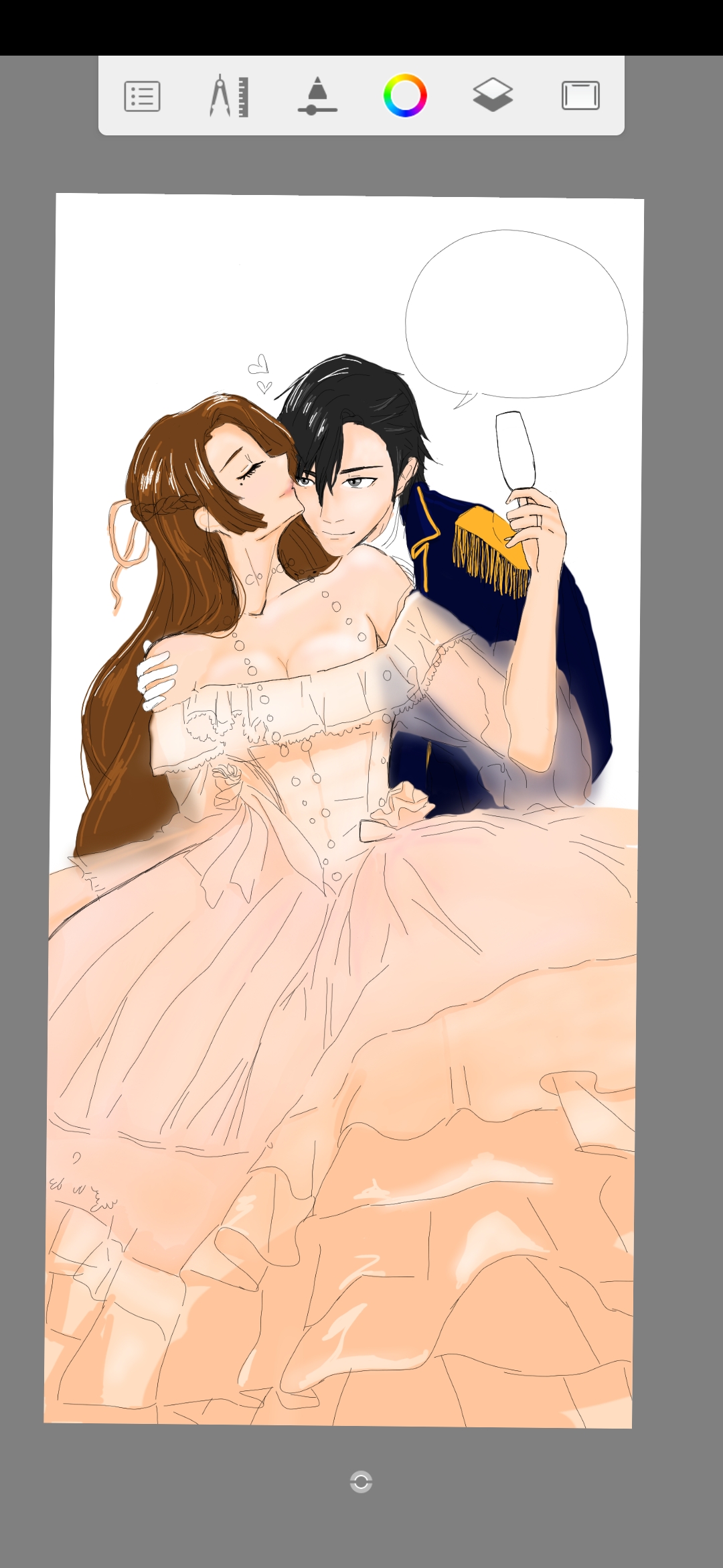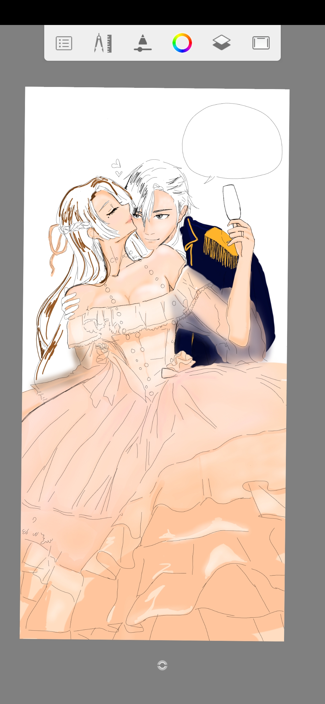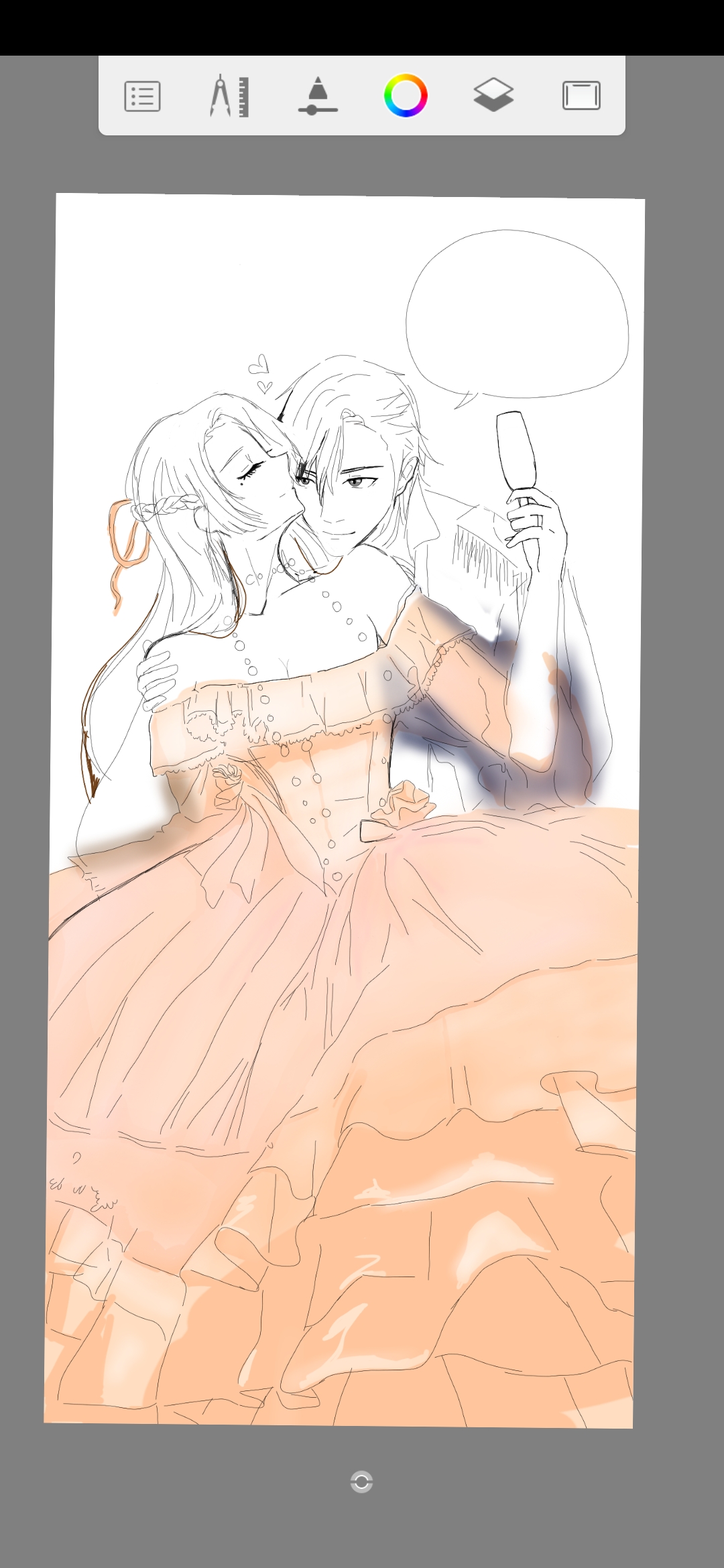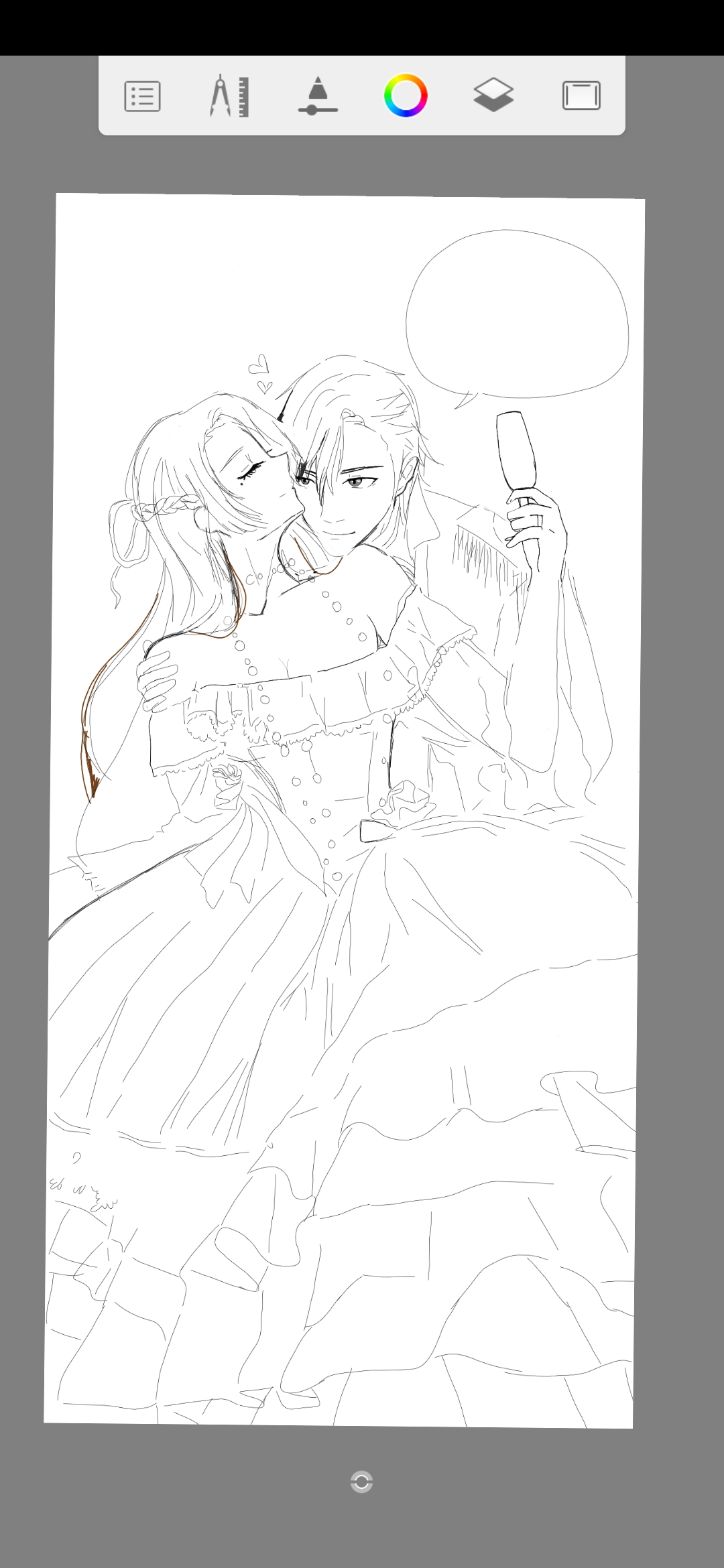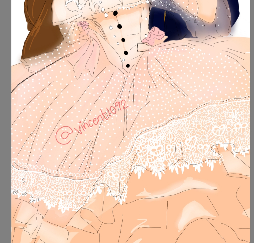 I was listening to some John Denver and Fra Lippo Lippi songs to feel the romantic atmosphere while sketching the outline (don't mind the brown smudge on her hair, I did that to test if brown suited baby pink 🤣)