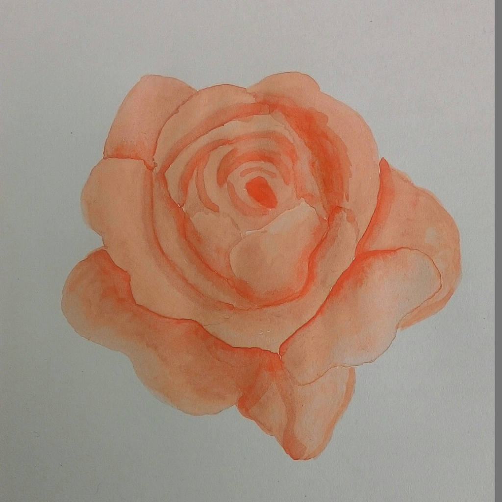 First, I sketched the rose by pencil and erased the thick line. After that, I started to color the first calyx.