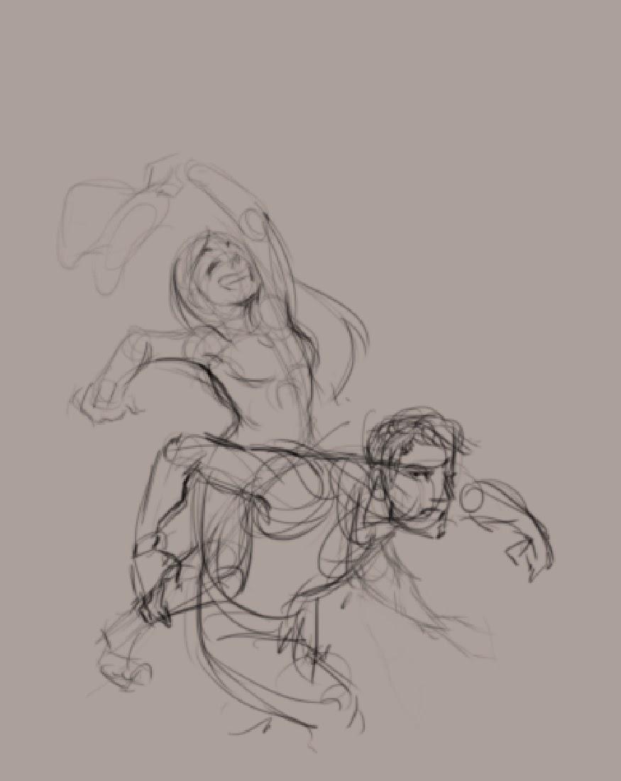 - A random sketch showing my efforts to depict a complicated action that encouraged me to be more ambitious and learn more in order to be able to illustrate any situation/action/character. I would not let myself be limited by my skills. I really had to improve on many many fronts. (Posted on Blogspot 23/11/2013)