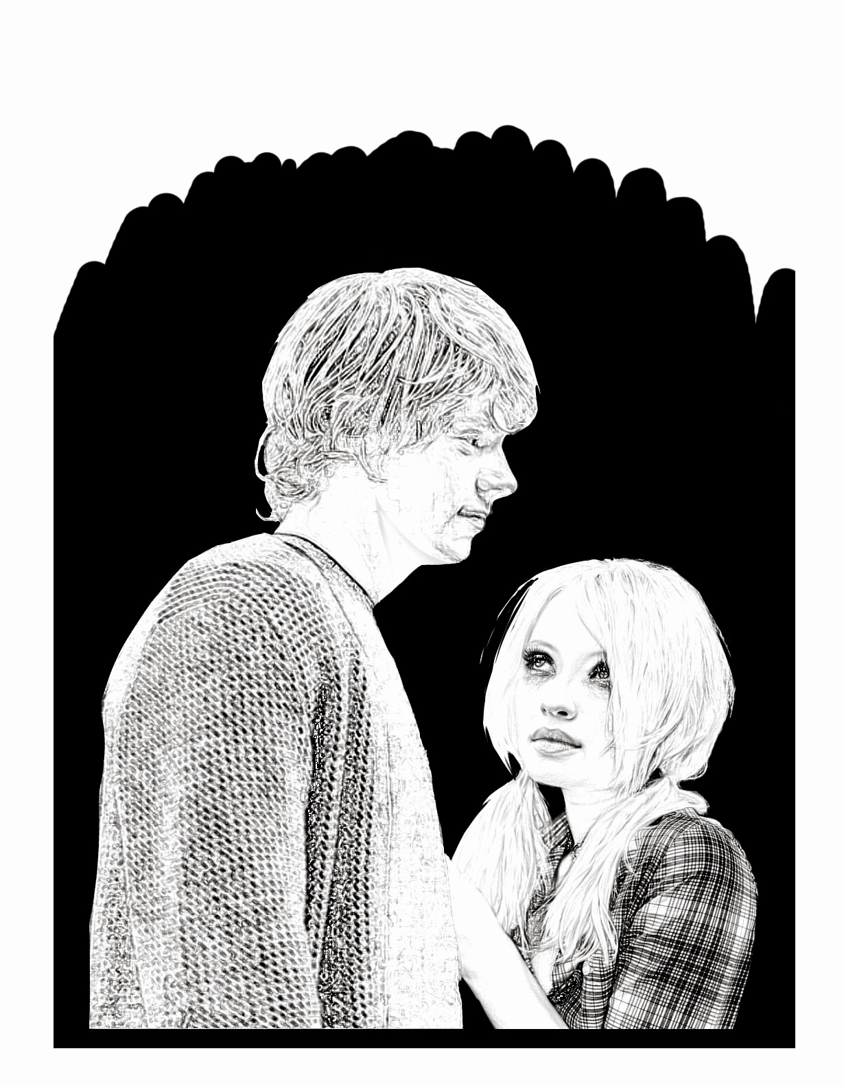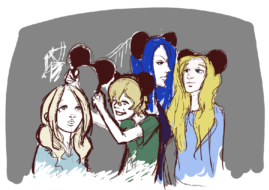 - One of my first illustrations of a Roleplay scene between four characters of Cover Your Eyes. The blond girl and boy on the left actually are the characters using Evan Peters and Emily Browning as FC (faceclaim) from the previous photomontage. (Posted on Blogspot 15/03/2016)