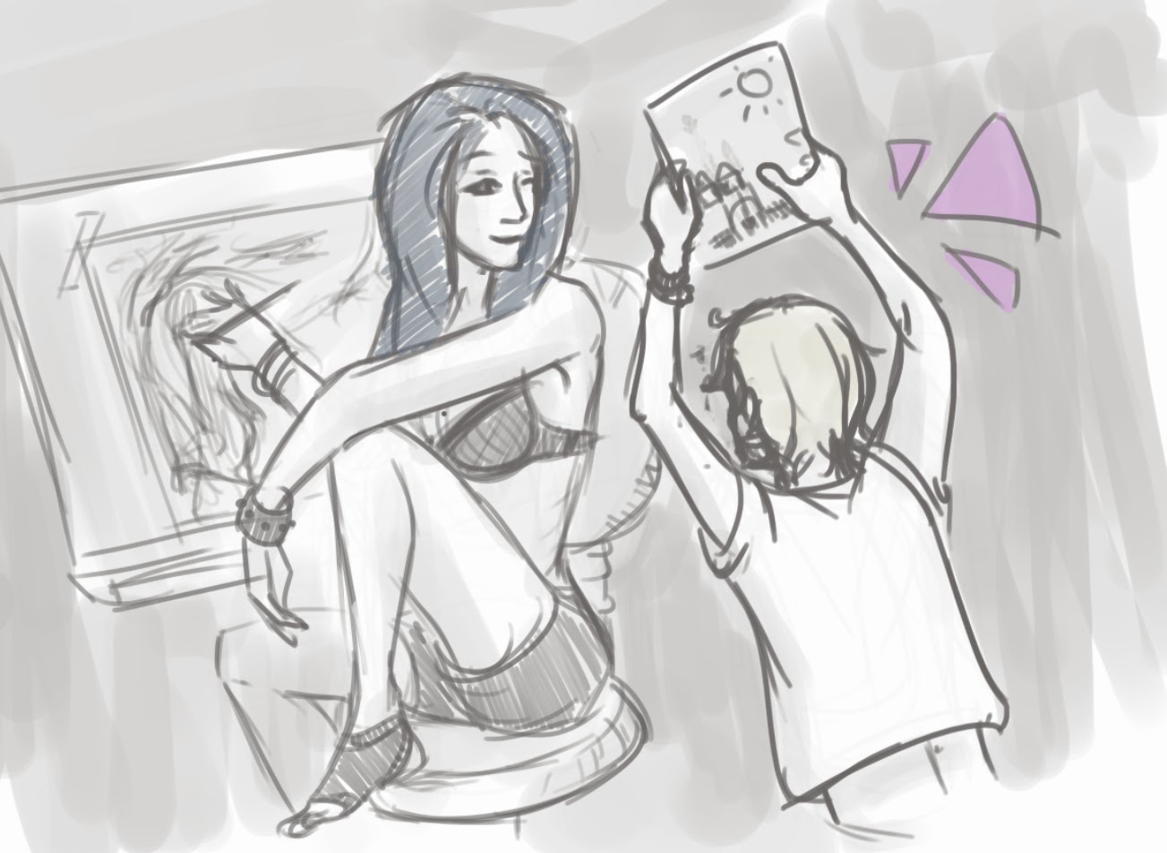 With drawing, the possibilities were infinite, I just had to draw decently enough to make the characters recognisable and there it was, the illustration to the story we wrote together, the scene, the characters. Quality wasn't the goal as a drawing would never be more realistic than actual pictures of faces, but it would be the satisfaction to see our stories put in images. Of course, since the stories were something written by several players / characters together, I showed my drawings to other people concerned.