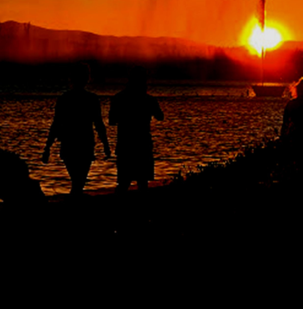 She said, "Come, let's take a walk along the lake." She looked into my eyes, and I saw her eyes full of love, in which the moon was shining with its full light.