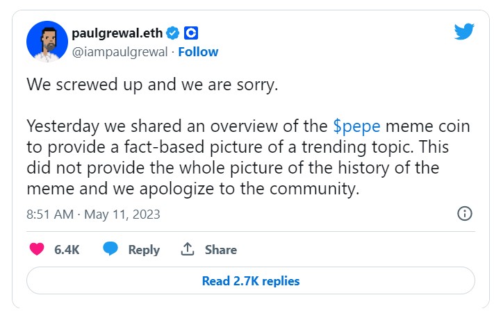 I think that is why Pepe community was upset about the accusation.