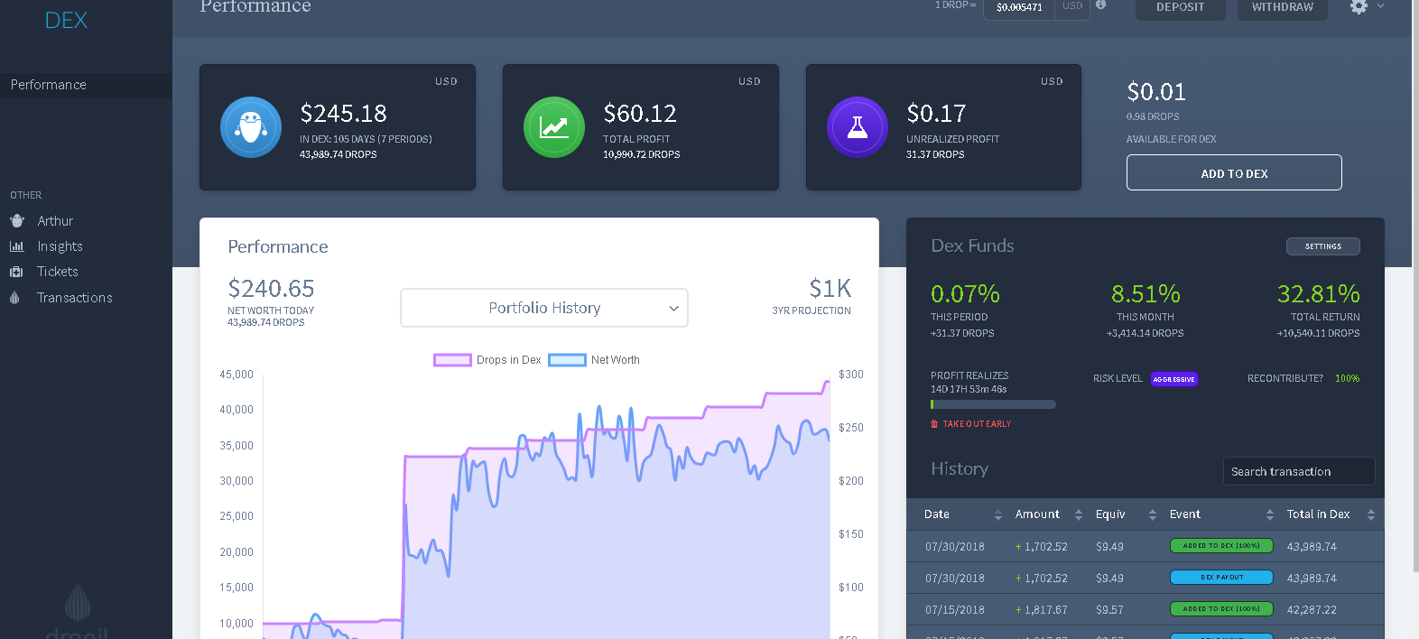 Today I was able to get my Dropil earnings reinvested. You can see on the bottom right of the screenshot where it shows how much Dropil was earned during the last reinvestments. Well this time I was able to reinvest about 1,700 and last time I was able to reinvest about 1,800 Dropil.